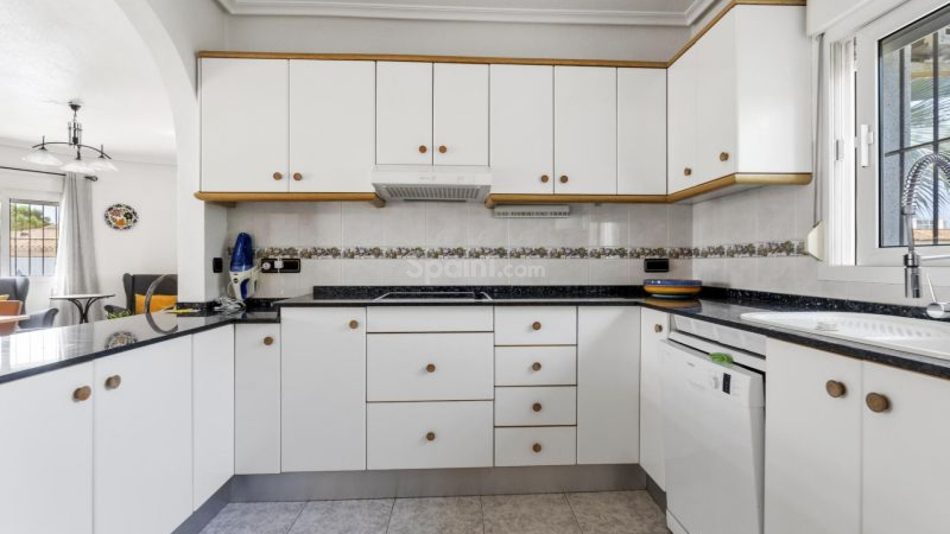 Spektakuläre freistehende Villa in Playa Flamenca. Entdecken Sie dieses wunderbare Haus in einer der lebendigsten und begehrtesten Gegenden des Mittelmeers: Playa Flamenca. Eine privilegierte Lage mit einem beneidenswerten Klima das ganze Jahr über, perfekt, um Sonne, Strand und das Leben im Freien zu genießen. Nur wenige Schritte entfernt finden Sie das berühmte Einkaufszentrum Zenia Boulevard, ein modernes und kultiges Reiseziel mit mehr als 150 Modegeschäften, Freizeit-, Speise- und Unterhaltungsmöglichkeiten für die ganze Familie. Sie können auch den traditionellen Samstagsmarkt, eine große Auswahl an Restaurants und alle wichtigen Dienstleistungen direkt vor Ihrer Haustür genießen. Das 578 m² große Grundstück ist eine wahre private Oase: Privater Swimmingpool, perfekt zum Baden oder Schwimmen zu jeder Jahreszeit. Gefliester Garten, pflegeleicht und so angelegt, dass jeder Platz optimal genutzt wird. Überdachte Pergola zum Parken und eine charmante Holzpergola mit Sommerküche und Essbereich, ideal für Familienfeiern oder Abende mit Freunden am Pool. Beim Betreten des Hauses werden Sie von einer verglasten Terrasse begrüßt – ideal für ein Frühstück oder einen Kaffee in der Sonne – sowie einer weiteren offenen Terrasse, die zum Entspannen einlädt. Der makellose und voll möblierte Innenbereich bietet Familienkomfort und befindet sich auf einer Ebene: Helles und geräumiges Wohn-Esszimmer mit direktem Zugang zur Küche. Offene amerikanische Küche, komplett ausgestattet. 3 große Schlafzimmer und 2 moderne Badezimmer. Das Anwesen verfügt außerdem über einen Souterrain, ursprünglich eine Garage, die nun in ein viertes Schlafzimmer und ein Badezimmer mit separatem Zugang umgewandelt wurde, sowie eine praktische Waschküche. Alle Räume sind mit Klimaanlage und Fußbodenheizung ausgestattet und sorgen so für Komfort zu jeder Jahreszeit. Im Außenbereich gibt es außerdem einen Abstell-/Hauswirtschaftsraum für die Poolausrüstung, der für noch mehr Funktionalität sorgt. Eine bezugsfertige Immobilie, die mediterranen Stil perfekt mit modernem Komfort verbindet. Erfüllen Sie sich Ihren Traum vom Eigenheim in Playa Flamenca, mitten im Herzen der Costa Blanca! Verpassen Sie nicht die Chance, dieses einzigartige Haus zu entdecken. Rufen Sie uns noch heute an, um einen Besichtigungstermin zu vereinbaren – Sie werden sich auf den ersten Blick verlieben!