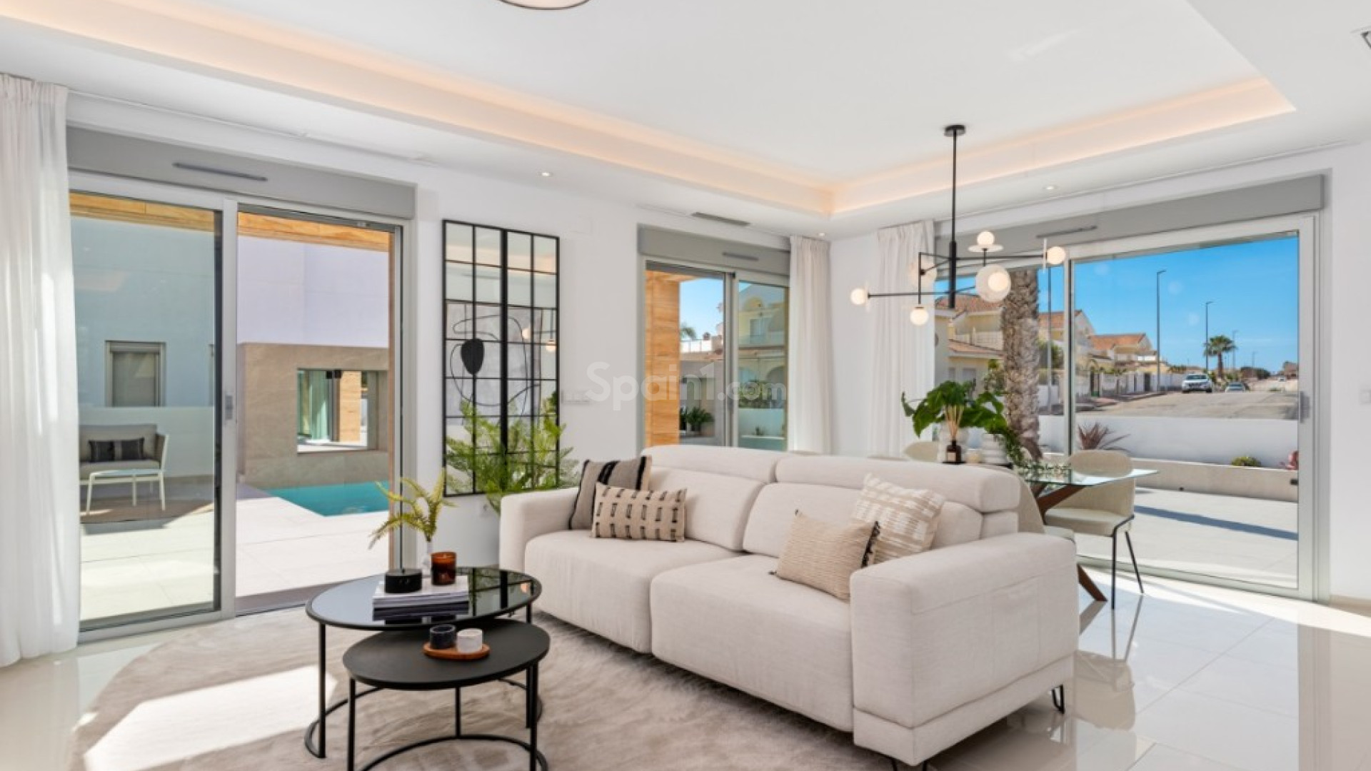 Neue Villa zum Verkauf in Ciudad Quesada. Angeboten wird ein neues, hochwertig gebautes Haus mit 4 Schlafzimmern und 4 Badezimmern, Wohnzimmer, geräumiger Küche und einem 110 m² großen Keller. Großer Garten mit privatem Pool (8x4), schöner Außenterrasse von 126 m² und Solarium von 38 m². Vor dem Haus befinden sich ein gefliester Swimmingpool und Parkplätze. Ciudad Quesada ist eine moderne Stadt an der südlichen Costa Blanca, nur 8 km nördlich der größeren Stadt Torrevieja. Die Flughäfen Alicante und Murcia sind jeweils in 30 Minuten, San Javier in 40 Minuten mit dem Auto erreichbar. Quesada bietet zudem eine große Auswahl an Pubs und Restaurants, den Wasserpark Aqua Splash sowie zwei Golfplätze: La Finca Golf und La Marquesa Golf and Country Club. Einige der schönsten Strände der Costa Blanca, die preisgekrönten Sandstrände mit Blauer Flagge von Guardamar del Segura, sind nur 10 Minuten entfernt, und auch die Salzseen von Torrevieja sind ganz in der Nähe – ideale Bedingungen für einen gesunden Lebensstil.