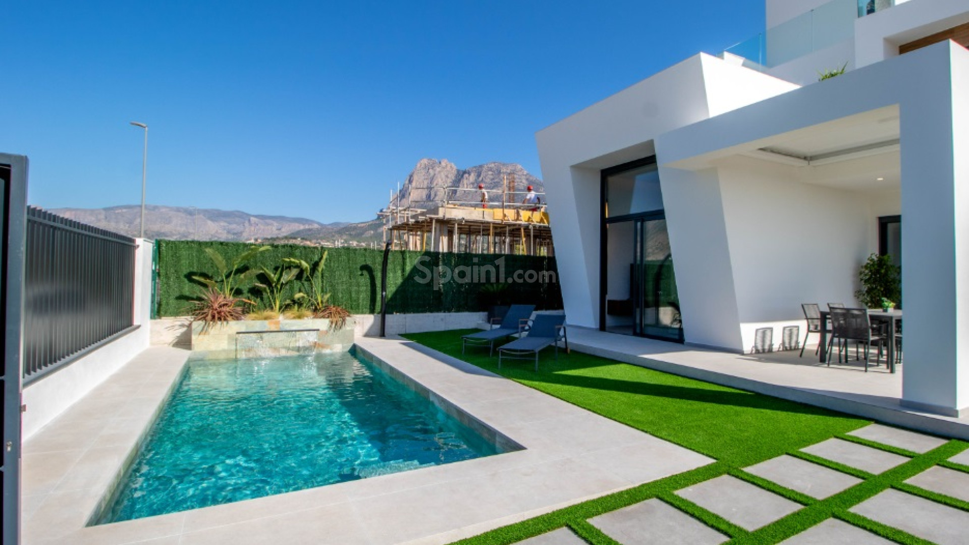 Neubauvillen in Finestrat zu verkaufen. Die Villen dieser neuen Anlage verfügen über 3 Schlafzimmer, 3 Badezimmer, ein großzügiges Wohnzimmer mit Küche, Terrasse, Solarium und einen schönen Garten mit privatem Pool. Sie haben die Wahl zwischen Villen mit Meer- oder Bergblick. Optional: Keller. Für die Bauarbeiten wurden ausschließlich hochwertige Materialien und Ausstattungen verwendet, darunter: doppelt verglaste Aluminiumfenster, Duschabtrennungen in den Badezimmern, hochwertiges Porzellan für Böden und Innenräume, Vorinstallation für Klimaanlage und vieles mehr. Die neue Anlage liegt nur wenige Kilometer von Benidorm, dem beliebten Unterhaltungszentrum an der Costa Blanca, entfernt. In unmittelbarer Nähe finden Sie Geschäfte, Supermärkte, Banken, Restaurants und Schulen. Golfplätze, Casinos, Einkaufszentren, Wasserparks, Diskotheken und vieles mehr sind nur wenige Minuten entfernt. Der Flughafen Alicante ist nur 55 km entfernt. Eine hervorragende Wahl, um das ganze Jahr über in Spanien zu leben.