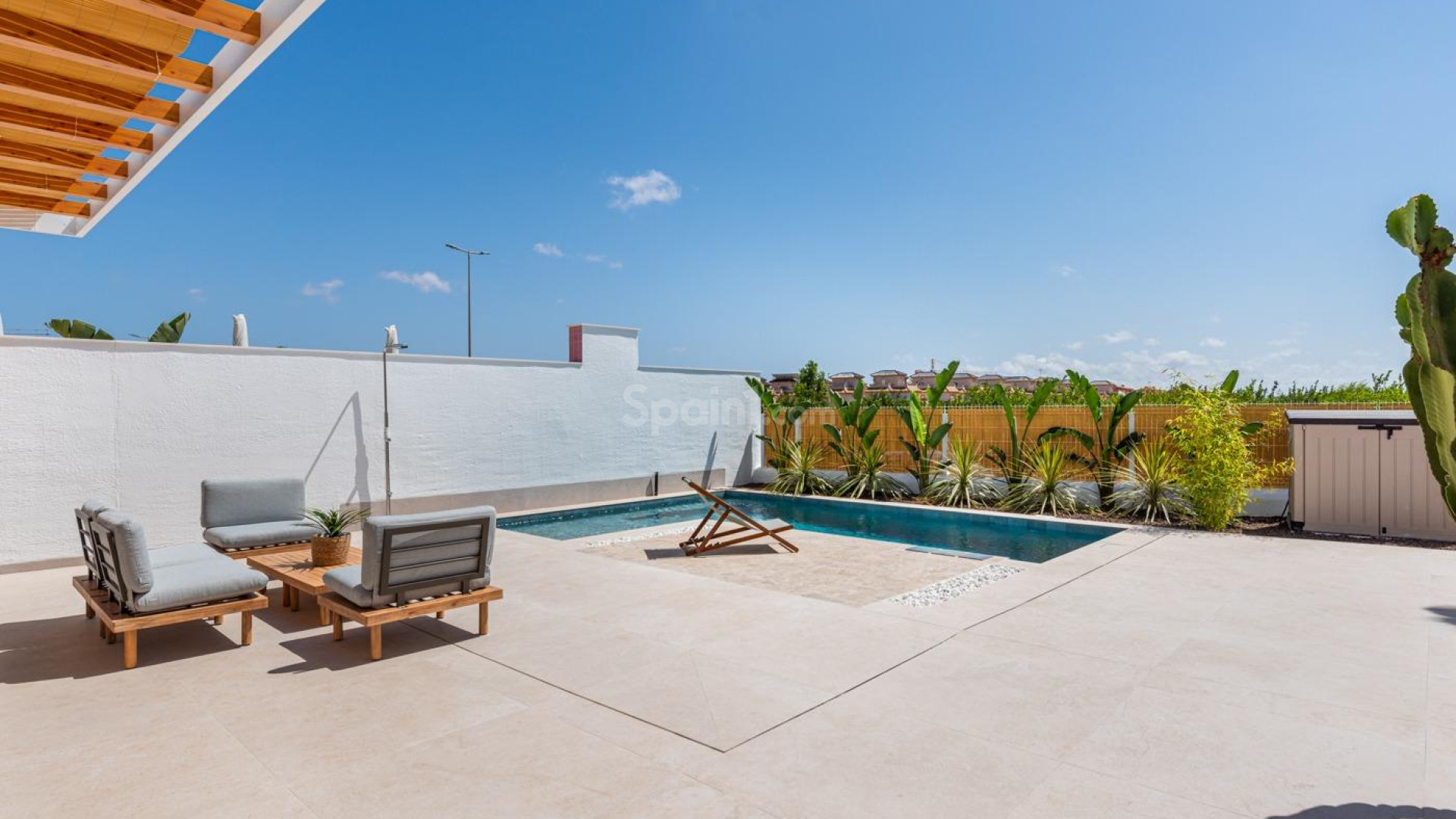 NEUBAU VILLEN IN BENIJOFAR Neubau einer Wohnanlage mit Villen in Benijofar. Neubau Villen im modernen Stil mit offener Küche und Wohnbereich, 3 Schlafzimmer, 2 Bäder, privates Grundstück mit Terrasse, Parkplatz und privatem Pool, Garten und eine wunderbare Sonnenterrasse mit herrlichem Blick. Benijofar ist ein hübsches Dorf mit einer charmanten Kirche und einem attraktiven Platz im Landesinneren der südlichen Costa Blanca, in der Nähe der Touristenorte Guardamar del Segura und Torrevieja. Benijofar ist auch ein beliebter Aufenthaltsort für die Sommerferien, da es nahe genug an den Küstenorten liegt und dennoch ruhig genug ist, um sich von allem zu erholen. Es gibt mehrere Golfplätze in der Nähe sowie Wasserparks im nahe gelegenen Rojales und Torrevieja. Die nächstgelegenen und besten Strände von Benijofar sind etwa fünfzehn Autominuten entfernt und gehören zu den besten Stränden der südlichen Costa Blanca, in Guardamar del Segura und Torrevieja. Von Benijofar aus verkehren auch regelmäßig Busse nach Guardamar del Segura und Torrevieja, von wo aus die Strände leicht zu erreichen sind. 20 Minuten Fahrt zum Flughafen Alicante mit regelmäßigen Flügen in ganz Europa.