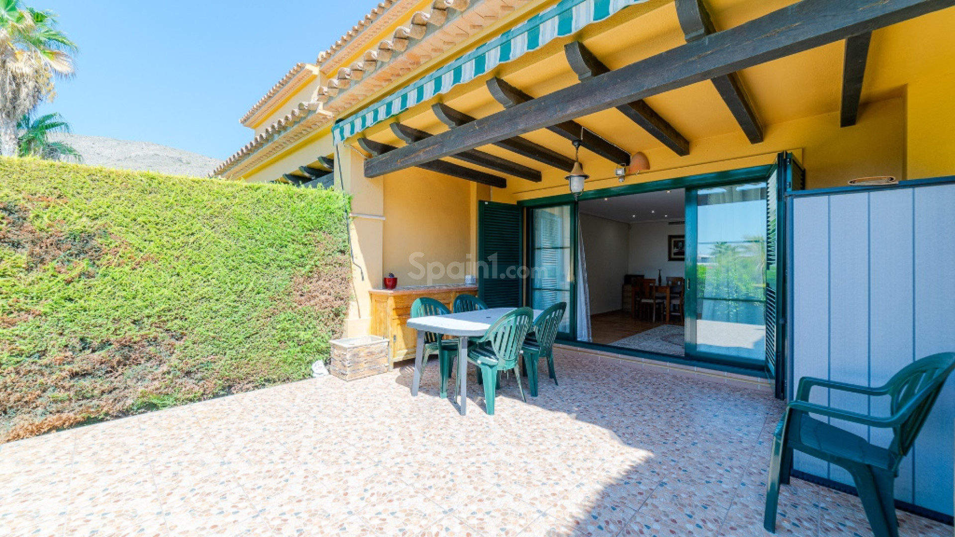 Reihenhaus mit 3 Schlafzimmern in Finestrat, Benidorm, zu verkaufen. Dieses Reihenhaus befindet sich in einer geschlossenen Wohnanlage in Finestrat, Alicante. Es bietet einen perfekten Rückzugsort für alle, die Komfort und Ruhe in Verbindung mit einem lebendigen Lebensstil suchen. Das Haus verfügt über eine Wohnfläche von 150 m² und bietet im Erdgeschoss 3 Schlafzimmer, 2 Badezimmer und ein Gäste-WC. Eine separate Küche ist ideal für Hobbyköche. Vom Wohnzimmer aus gelangt man auf eine 50 m² große Terrasse mit privatem Zugang zur Wohnanlage – perfekt, um die Sonne zu genießen und die schöne Landschaft zu bewundern. Das Haus ist mit Klimaanlage (Kühlen/Heizen) und Heizung ausgestattet. Doppelverglasung und eine Sicherheitstür sorgen für die Sicherheit und das Wohlbefinden der Bewohner. Das möblierte und bezugsfertige Haus bietet Annehmlichkeiten wie Satellitenfernsehen, Internet und einen Hauswirtschaftsraum für den Alltag. Die Außendusche und der Whirlpool runden das Wohnerlebnis ab.