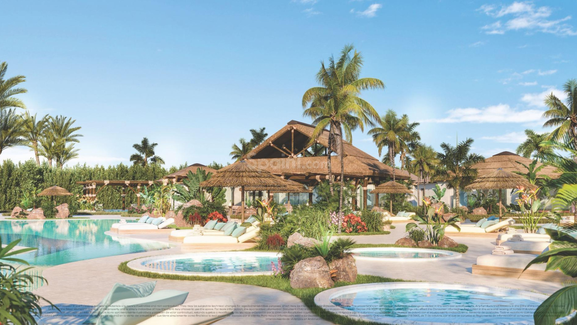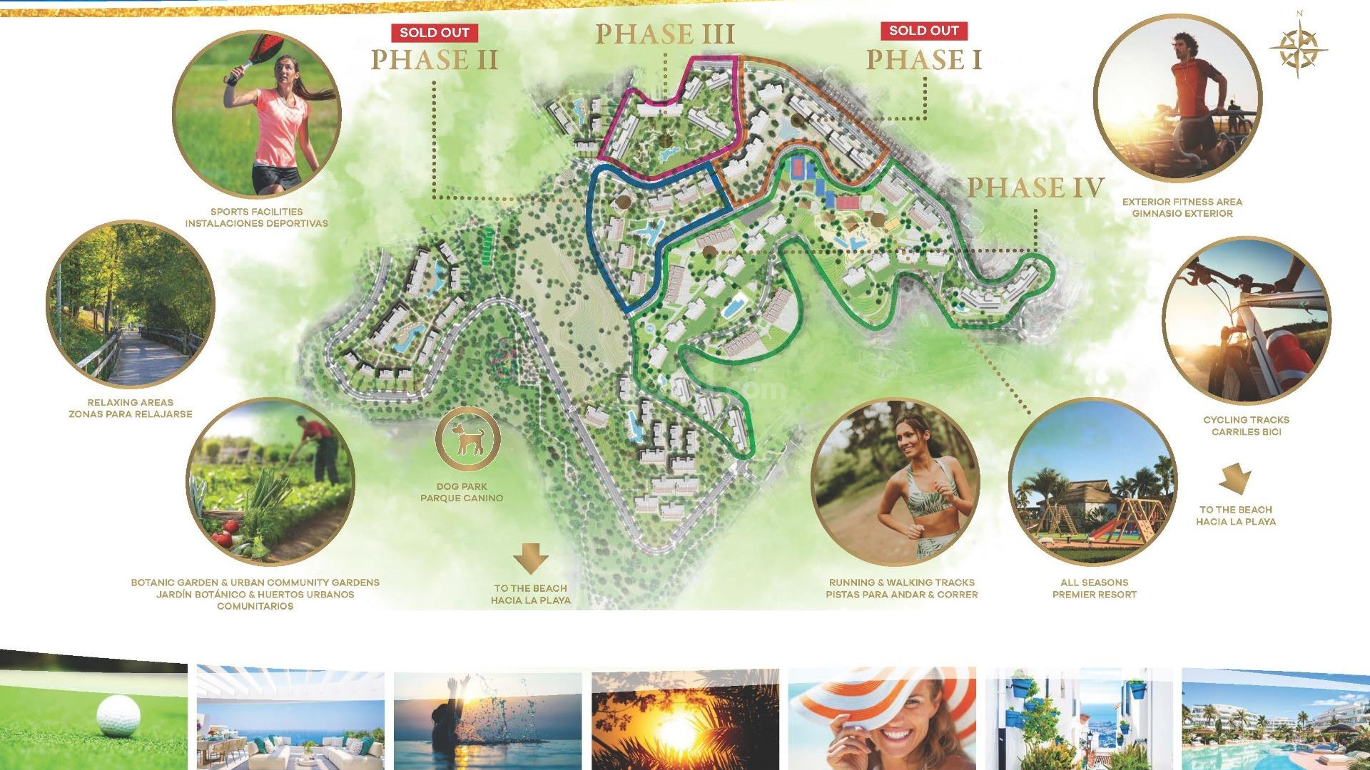 Der Wohnkomplex ist auf mehrere urbanisierte Phasen verteilt, die durch üppige und weitläufige Grünflächen miteinander verbunden sind. Ein Konzept, das einen entspannten und ruhigen Lebensstil in Harmonie mit der natürlichen Umgebung fördern soll.