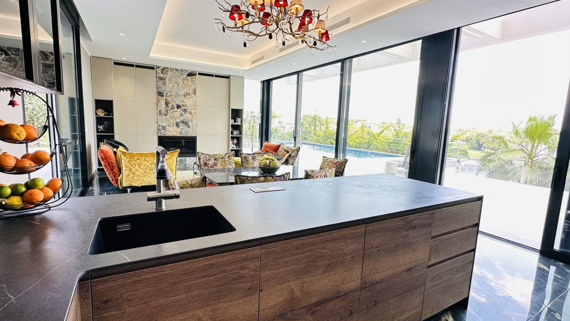 Lujosa villa de 6 dormitorios con vistas panorámicas a la piscina en el prestigioso Madroño – Las Colinas Golf & Country Club. Sumérjase en la serenidad y el lujo de esta exclusiva villa, ubicada en una de las zonas más codiciadas de la costa sur de España, dentro del exclusivo Las Colinas Golf & Country Club. Una singular combinación de belleza natural, diseño contemporáneo y servicios de primera calidad hacen de esta propiedad la opción perfecta para vivir, relajarse o invertir. Espaciosa, elegante y diseñada para vivir. Ubicada en una parcela privada con impresionantes vistas al campo de golf, esta villa cuenta con 6 dormitorios de generoso tamaño, 4 baños completos y un aseo adicional, ideal para familias numerosas o para recibir invitados. La elegante y moderna arquitectura se complementa con acabados de alta calidad y materiales naturales. La sala de estar de planta abierta se conecta a la perfección con la cocina y se abre a una amplia terraza, donde encontrará una impresionante piscina infinita con vistas a la exuberante vegetación. Este es el entorno perfecto para disfrutar de amaneceres, atardeceres y todo lo demás. El sótano, totalmente equipado, incluye una sala de cine en casa, un gimnasio y ofrece la flexibilidad de añadir un séptimo dormitorio, una oficina privada, un estudio o cualquier espacio personalizado que se adapte a su estilo de vida. Cada rincón de la casa ha sido cuidadosamente diseñado para la comodidad y la funcionalidad. Las Colinas Golf & Country Club ofrece a sus residentes seguridad las 24 horas, total privacidad y una gama de servicios de primera clase, como restaurantes gourmet, un moderno gimnasio, canchas de tenis, senderos naturales y uno de los campos de golf mejor clasificados de Europa.