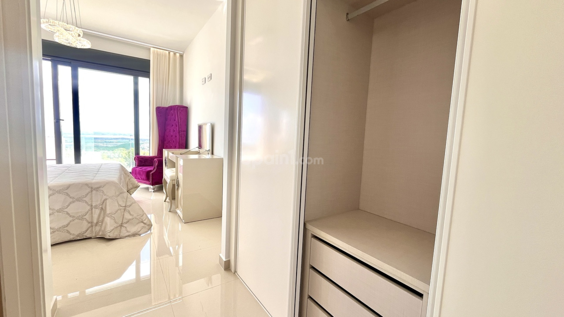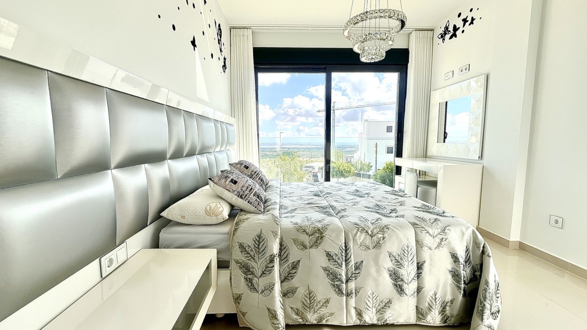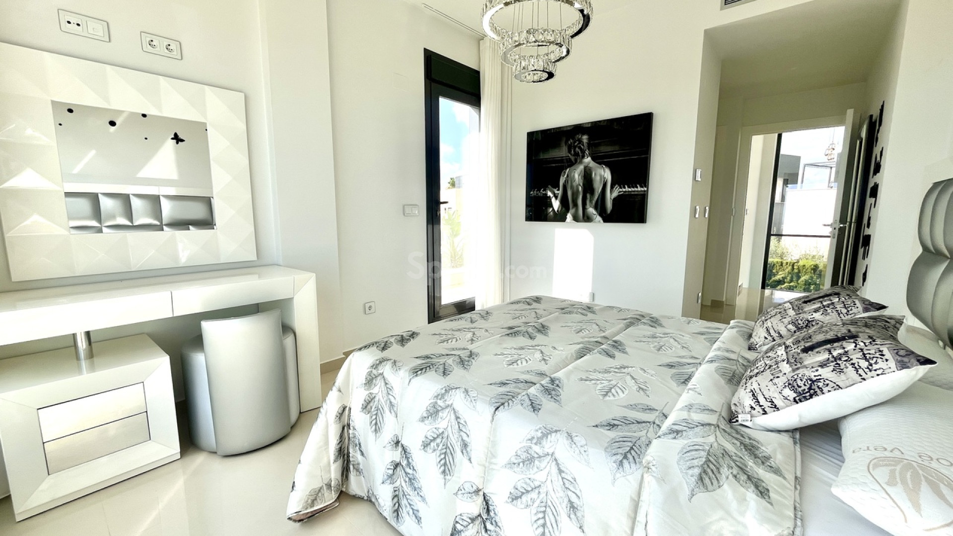 Bienvenido a esta excepcional villa de lujo de reciente construcción en Residencial Bellavista, San Miguel de Salinas, que ofrece una armoniosa combinación de diseño contemporáneo y vistas impresionantes. Con un total de 5 dormitorios y 4 baños, esta propiedad, meticulosamente diseñada, se distribuye en dos plantas y un sótano, accesible mediante un cómodo ascensor y una impresionante escalera de cristal con iluminación interior. El sótano se distribuye en una versátil sala de juegos con billar y futbolín, un espacioso salón de celebraciones con cocina completa, 2 dormitorios, 2 trasteros y un baño completo bien equipado. La planta principal cuenta con un salón-comedor integrado con cocina de concepto abierto e isla central, complementado por el dormitorio principal con baño en suite. Además, un lavadero y un aseo de invitados realzan la practicidad de esta planta. Al ascender a la primera planta, descubrirá dos amplios dormitorios, dos baños y acceso a encantadores balcones. La joya de la corona de esta villa de lujo es el solárium de 70 m² en la planta superior, que ofrece un mirador incomparable para disfrutar de vistas panorámicas. Esta propiedad presume de una gama de sofisticadas características, como aire acondicionado, aparcamiento exclusivo para varios vehículos, calefacción central con suelo radiante en toda la vivienda y un elegante mobiliario de diseño. Entre sus equipamientos destaca una máquina de pellets para calefacción, paneles solares, un calentador de agua eléctrico, ventanas y puertas de seguridad y un completo sistema de seguridad con sensores en cada estancia. La residencia está cuidadosamente equipada con servicios de alta calidad, como sofás motorizados, colchones nuevos, un horno de vapor con pirólisis y un frigorífico combinado con hielo normal y picado. El espacio exterior es un remanso de lujo, con piscina privada con cascada, jacuzzi e hidromasaje. La zona de la piscina, cuidadosamente ajardinada, está adornada con exuberante vegetación, y una práctica ducha exterior contribuye a un ambiente de lujo. El amplio aparcamiento dentro de la parcela garantiza la comodidad de varios vehículos. Ubicado en Residencial Bellavista, a solo 7 kilómetros de las playas de Orihuela, este enclave está rodeado de campos de golf y alberga el principal centro comercial de la zona, con una amplia gama de servicios, bares, restaurantes, tiendas y supermercados. Ideal para los amantes de la naturaleza y la tranquilidad, esta residencia ofrece un estilo de vida de elegancia y confort inigualables.