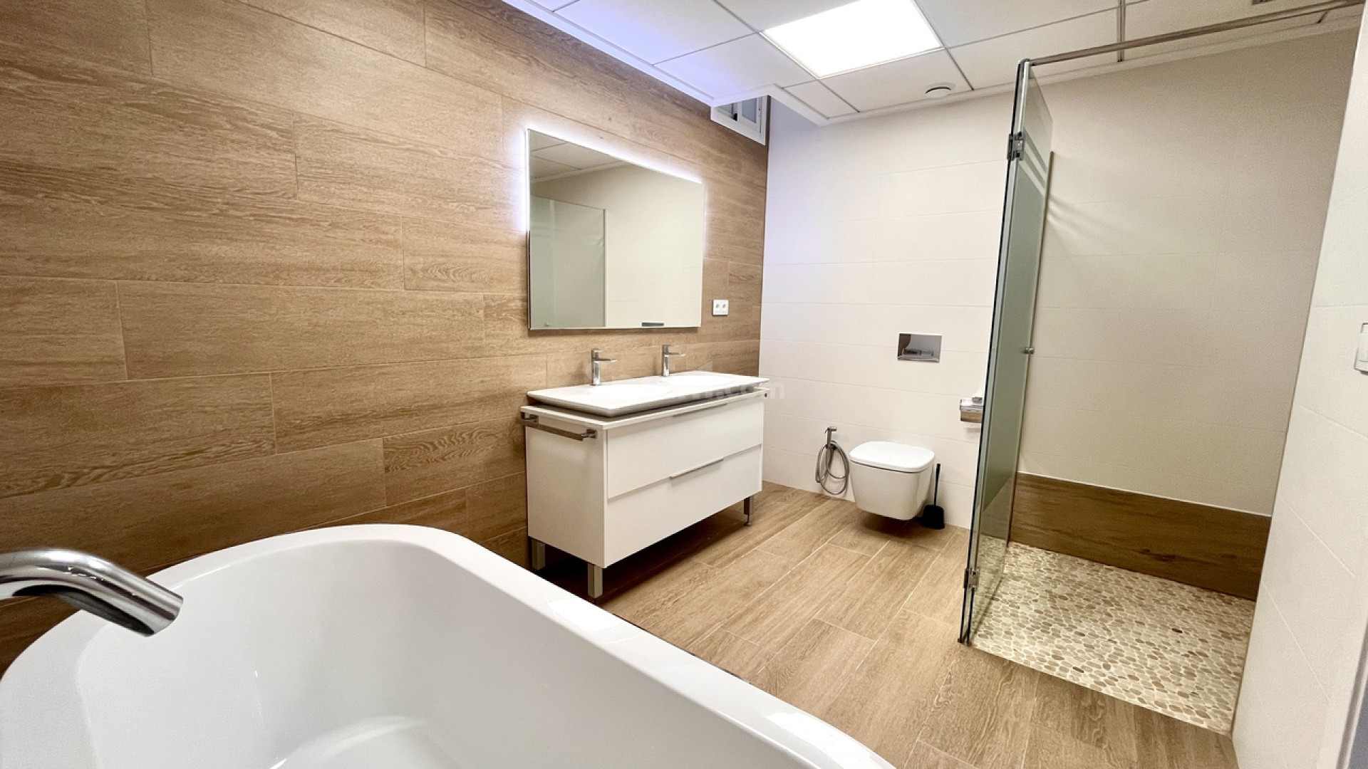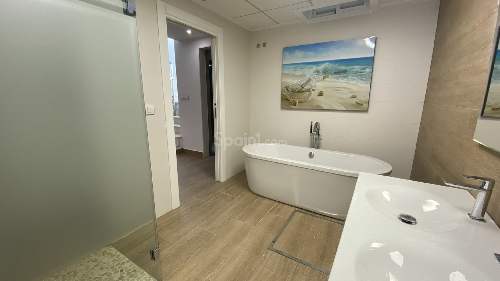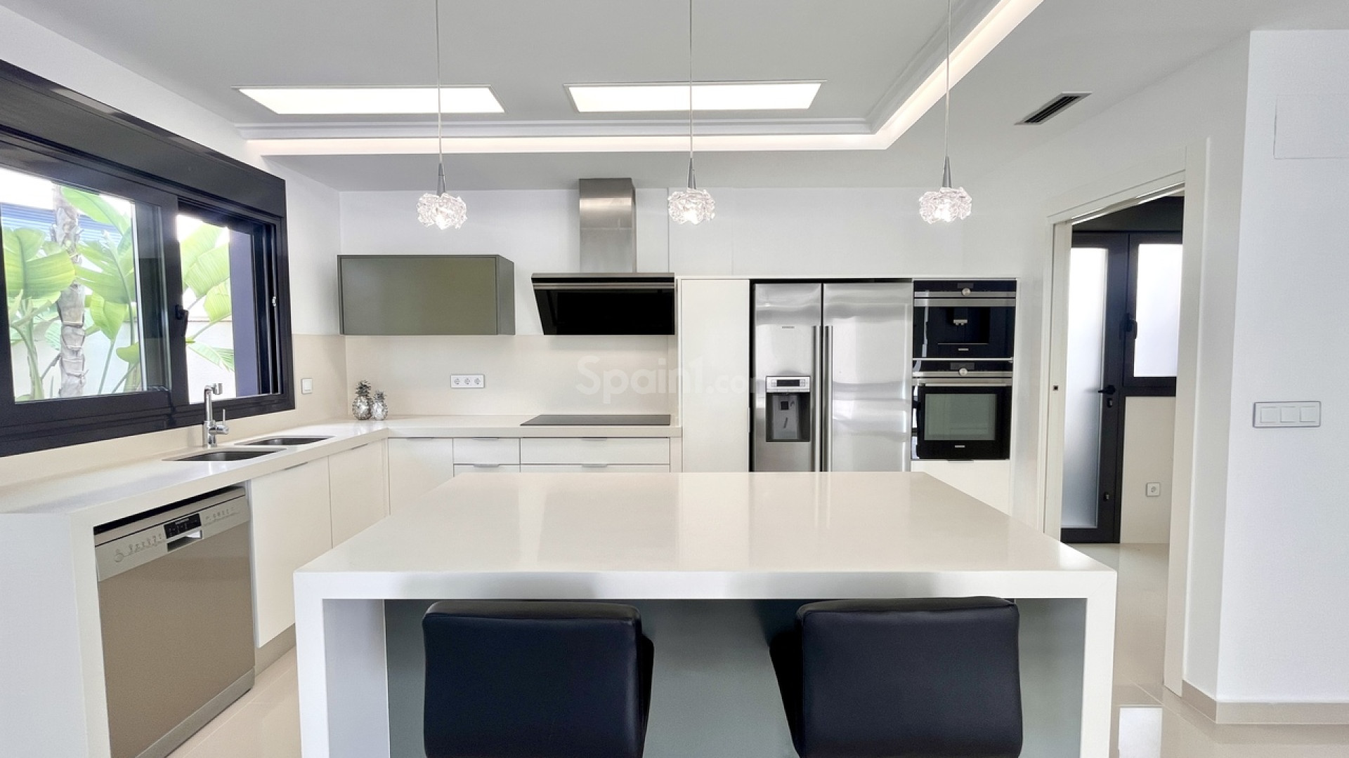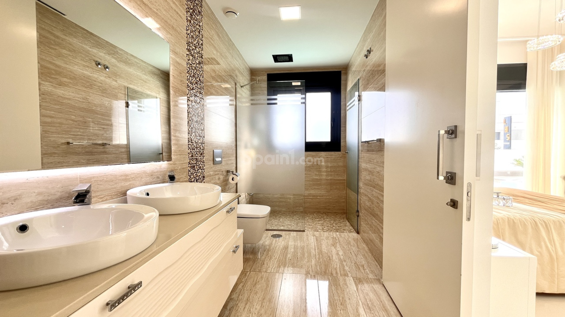 Bienvenido a esta excepcional villa de lujo de reciente construcción en Residencial Bellavista, San Miguel de Salinas, que ofrece una armoniosa combinación de diseño contemporáneo y vistas impresionantes. Con un total de 5 dormitorios y 4 baños, esta propiedad, meticulosamente diseñada, se distribuye en dos plantas y un sótano, accesible mediante un cómodo ascensor y una impresionante escalera de cristal con iluminación interior. El sótano se distribuye en una versátil sala de juegos con billar y futbolín, un espacioso salón de celebraciones con cocina completa, 2 dormitorios, 2 trasteros y un baño completo bien equipado. La planta principal cuenta con un salón-comedor integrado con cocina de concepto abierto e isla central, complementado por el dormitorio principal con baño en suite. Además, un lavadero y un aseo de invitados realzan la practicidad de esta planta. Al ascender a la primera planta, descubrirá dos amplios dormitorios, dos baños y acceso a encantadores balcones. La joya de la corona de esta villa de lujo es el solárium de 70 m² en la planta superior, que ofrece un mirador incomparable para disfrutar de vistas panorámicas. Esta propiedad presume de una gama de sofisticadas características, como aire acondicionado, aparcamiento exclusivo para varios vehículos, calefacción central con suelo radiante en toda la vivienda y un elegante mobiliario de diseño. Entre sus equipamientos destaca una máquina de pellets para calefacción, paneles solares, un calentador de agua eléctrico, ventanas y puertas de seguridad y un completo sistema de seguridad con sensores en cada estancia. La residencia está cuidadosamente equipada con servicios de alta calidad, como sofás motorizados, colchones nuevos, un horno de vapor con pirólisis y un frigorífico combinado con hielo normal y picado. El espacio exterior es un remanso de lujo, con piscina privada con cascada, jacuzzi e hidromasaje. La zona de la piscina, cuidadosamente ajardinada, está adornada con exuberante vegetación, y una práctica ducha exterior contribuye a un ambiente de lujo. El amplio aparcamiento dentro de la parcela garantiza la comodidad de varios vehículos. Ubicado en Residencial Bellavista, a solo 7 kilómetros de las playas de Orihuela, este enclave está rodeado de campos de golf y alberga el principal centro comercial de la zona, con una amplia gama de servicios, bares, restaurantes, tiendas y supermercados. Ideal para los amantes de la naturaleza y la tranquilidad, esta residencia ofrece un estilo de vida de elegancia y confort inigualables.