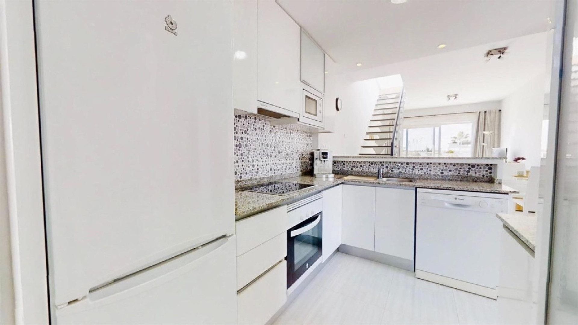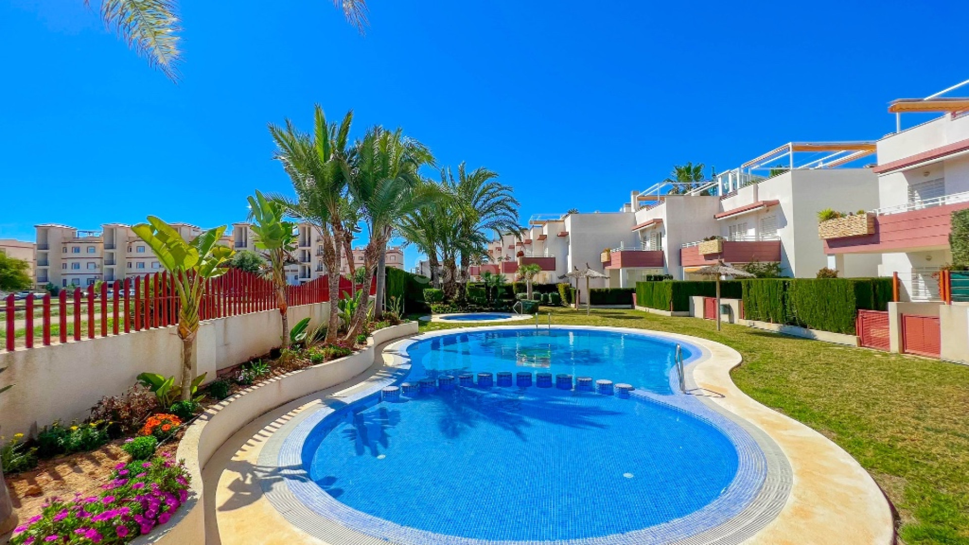 Se vende atico en ¨Silene¨, Punta Prima, Playa Flamenca, Orihuela Costa. Fantástico apartamento -ático con solarium privado está ubicado en una comunidad cerrada "Silene" en Punta Prima, a poca distancia de la playa y del centro comercial. La propiedad tiene 2 dormitorios,1 baño, cocina americana con lavadero, sala de estar con comedor, terraza y solarium con vistas a la piscina y jardín. Hay una piscina comunitaria y zona de aparcamiento en la calle. Punta Prima es un excelente destino de vacaciones con 320 días de sol, ubicado en el sur de la Costa Blanca. Punta Prima ofrece una amplia variedad de atracciones para unas vacaciones activas o relajantes. Disfrutará de hermosas playas de arena, cafés, restaurantes y bares y campos de golf cercanos: Campo de Golf Villamartin, Real Club de Golf Campoamor y otros. Además, a solo 10 minutos en automóvil encontrará el centro comercial más grande de la zona, La Zenia Boulevard.
