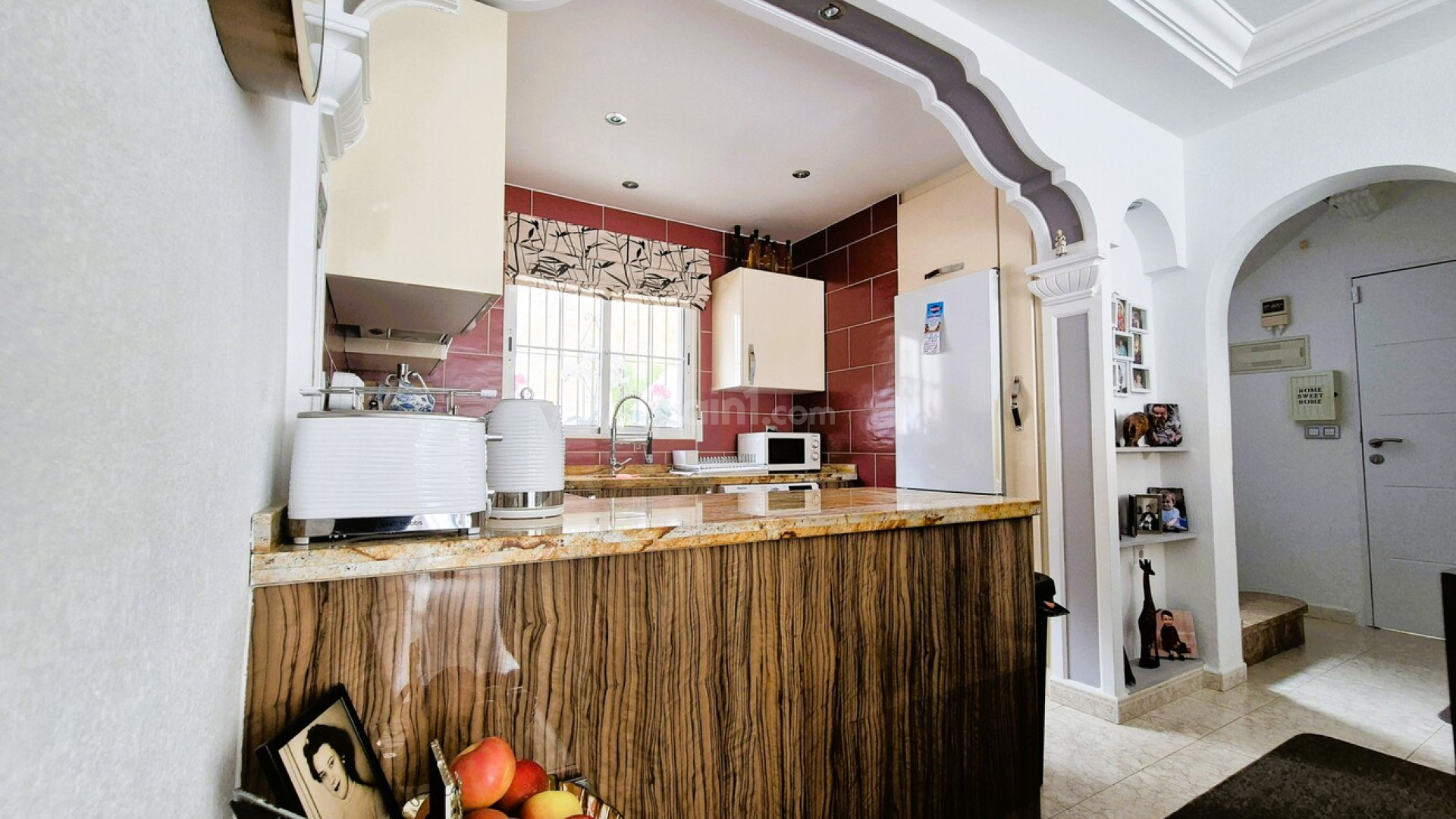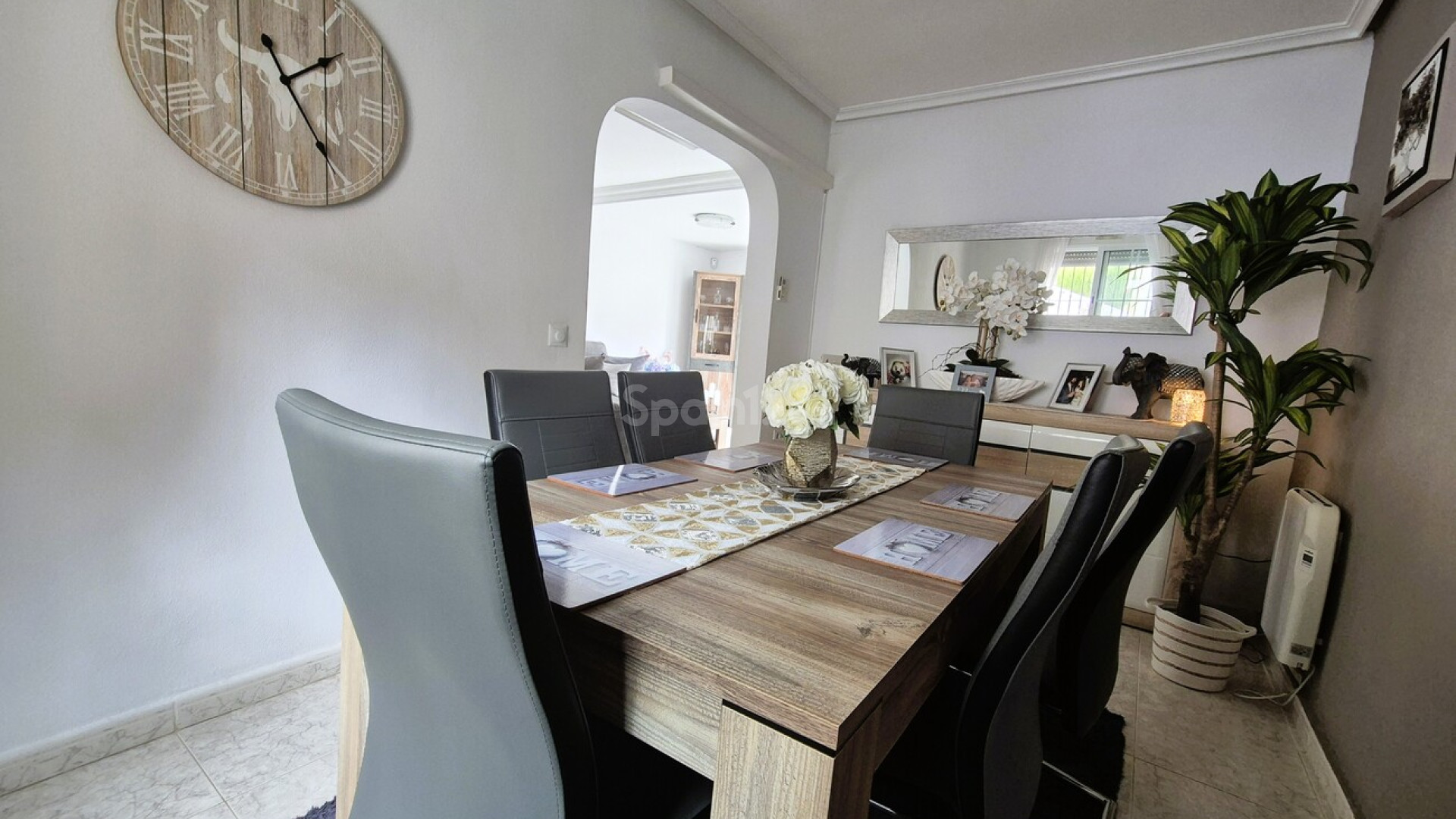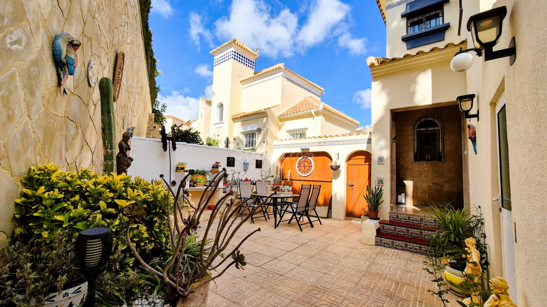 Presentamos esta impresionante villa independiente de 3 dormitorios y 2 baños, situada en El Galán. Fantástica ubicación y servicios (a poca distancia a pie). A solo 5 minutos de bares y restaurantes locales, a 20 minutos de Villamartín o del centro comercial La Fuente, a 15 minutos de Mercadona y Aldi. A 5 minutos a pie de las paradas de autobús que le llevan a Villamartín/La Zenia y las playas en una dirección, o a La Fuente, Cabo Roig y las playas en la otra. A 8 minutos en coche de las impresionantes playas de la Costa Blanca. A 10 minutos en coche del bulevar de La Zenia. A 50 minutos de los aeropuertos de Alicante/Murcia. Villa: situada en una tranquila calle residencial, encontrará al final de la misma, esta villa de estilo único. En la parte delantera, junto al salón, hay una terraza donde podrá disfrutar de su café matutino con vistas al jardín delantero. El lateral consta de una cochera, aparcamiento para 2 coches, luego retrocediendo a través del área lateral cerrada, se accede a un patio, que conduce al jardín trasero, que actualmente alberga un jacuzzi. Para cualquiera que desee tener una piscina, hay mucho espacio para construir una. Villa - Interior Al entrar en la villa, por la entrada trasera, hay un pequeño armario de almacenamiento y habitaciones que dan a él y escaleras al 2.º piso. A la izquierda, hay un cuarto de ducha, recién reformado con especificaciones de alta calidad y un dormitorio doble con armarios empotrados. Al entrar en el salón, le da la bienvenida una cocina de lujo totalmente equipada con encimeras de mármol únicas; no se ha escatimado en gastos en esta villa. La decoración se ha realizado con un alto estándar, al igual que los accesorios. El salón y muchas otras habitaciones, tienen molduras únicas en los techos, que añaden carácter y clase adicionales. Hay un comedor que se comunica con el salón y en la parte delantera del salón, hay grandes puertas que dan a una terraza. 1.er piso Aquí encontrará el 2.º cuarto de ducha, recién reformado con especificaciones de alta calidad. La primera planta cuenta con dos dormitorios dobles, ambos con armarios empotrados, y ambos con acceso a una terraza. La terraza de los dormitorios dispone de una escalera de caracol que conduce a un amplio solárium, ideal para disfrutar de los 320 días de sol radiante. Información adicional: La villa está equipada con aire acondicionado individual y ventiladores de techo. Esta villa no forma parte de una comunidad, por lo que no se aplican gastos. IBI: 530 € al año. La villa se puede alquilar parcialmente amueblada y algunos electrodomésticos pueden quedarse (todo a convenir con los propietarios). ¡Contáctenos ahora para visitarla!