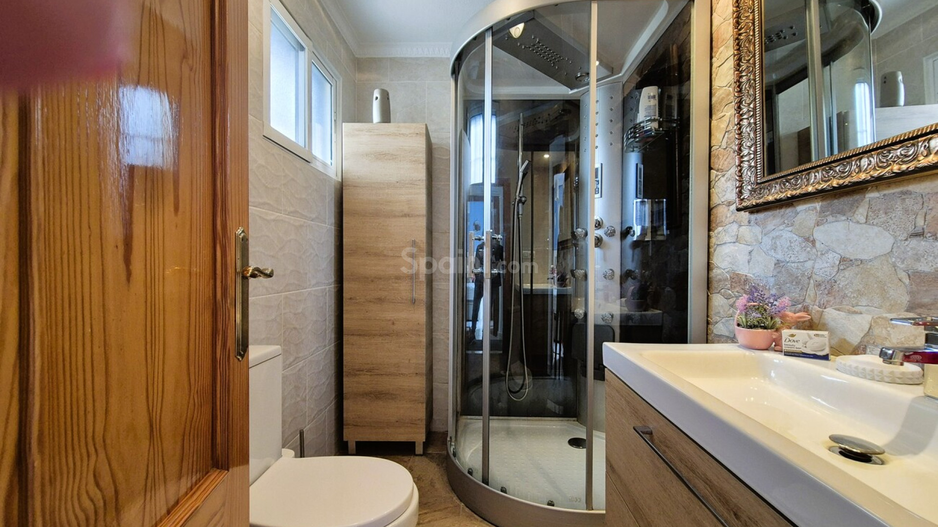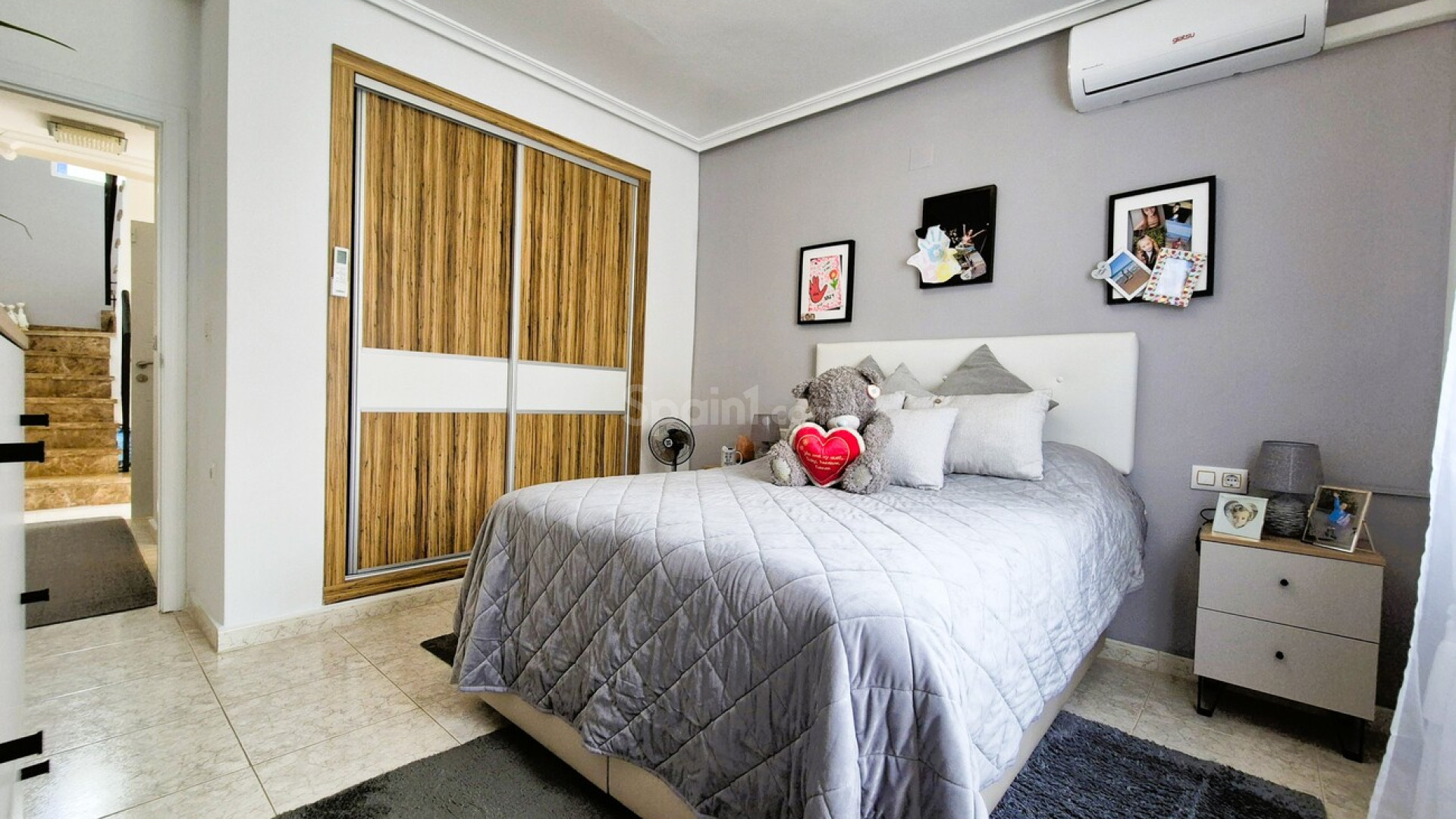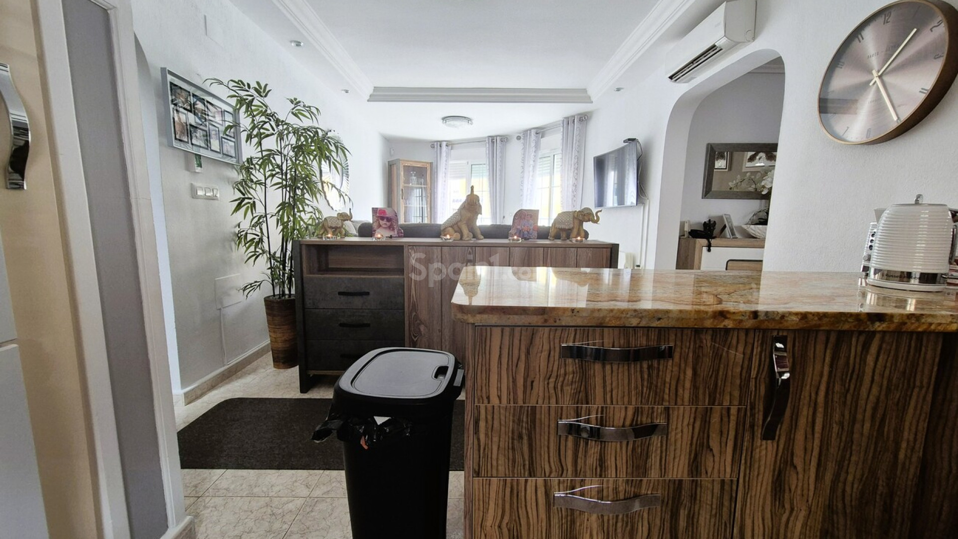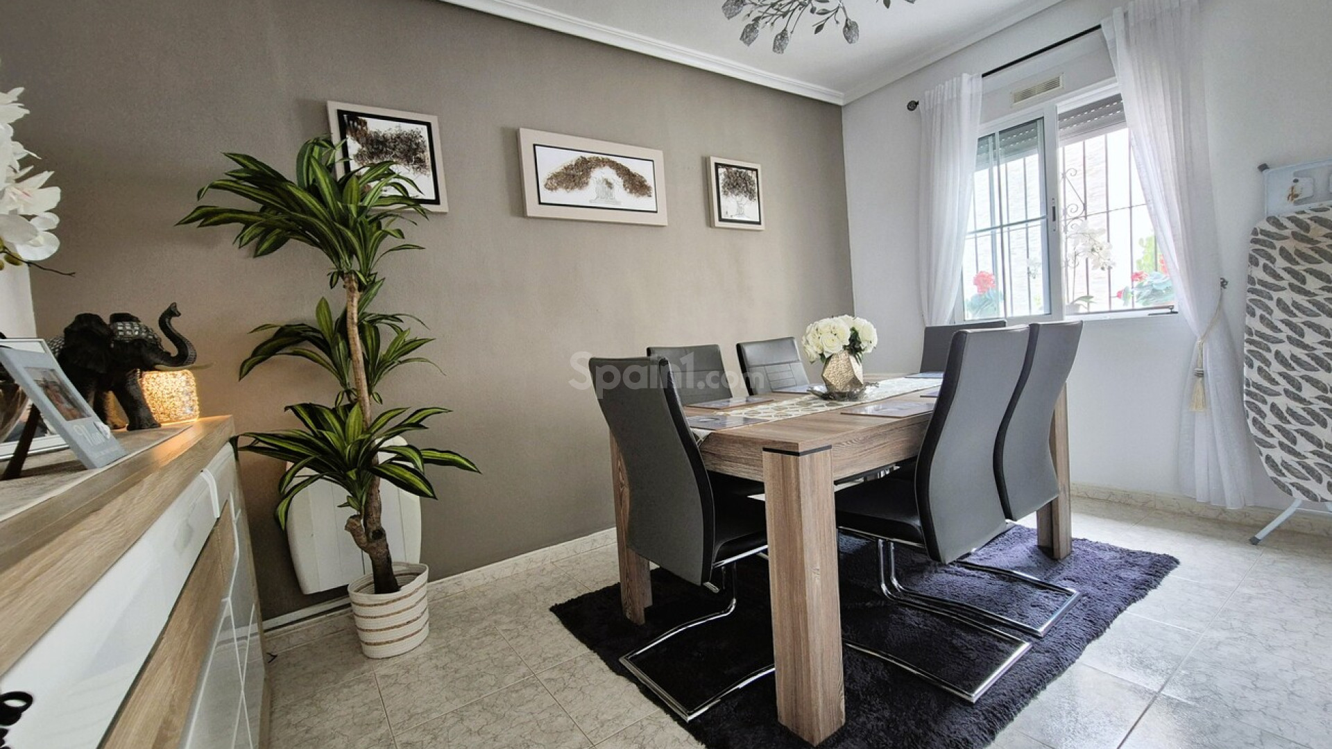 Presentamos esta impresionante villa independiente de 3 dormitorios y 2 baños, situada en El Galán. Fantástica ubicación y servicios (a poca distancia a pie). A solo 5 minutos de bares y restaurantes locales, a 20 minutos de Villamartín o del centro comercial La Fuente, a 15 minutos de Mercadona y Aldi. A 5 minutos a pie de las paradas de autobús que le llevan a Villamartín/La Zenia y las playas en una dirección, o a La Fuente, Cabo Roig y las playas en la otra. A 8 minutos en coche de las impresionantes playas de la Costa Blanca. A 10 minutos en coche del bulevar de La Zenia. A 50 minutos de los aeropuertos de Alicante/Murcia. Villa: situada en una tranquila calle residencial, encontrará al final de la misma, esta villa de estilo único. En la parte delantera, junto al salón, hay una terraza donde podrá disfrutar de su café matutino con vistas al jardín delantero. El lateral consta de una cochera, aparcamiento para 2 coches, luego retrocediendo a través del área lateral cerrada, se accede a un patio, que conduce al jardín trasero, que actualmente alberga un jacuzzi. Para cualquiera que desee tener una piscina, hay mucho espacio para construir una. Villa - Interior Al entrar en la villa, por la entrada trasera, hay un pequeño armario de almacenamiento y habitaciones que dan a él y escaleras al 2.º piso. A la izquierda, hay un cuarto de ducha, recién reformado con especificaciones de alta calidad y un dormitorio doble con armarios empotrados. Al entrar en el salón, le da la bienvenida una cocina de lujo totalmente equipada con encimeras de mármol únicas; no se ha escatimado en gastos en esta villa. La decoración se ha realizado con un alto estándar, al igual que los accesorios. El salón y muchas otras habitaciones, tienen molduras únicas en los techos, que añaden carácter y clase adicionales. Hay un comedor que se comunica con el salón y en la parte delantera del salón, hay grandes puertas que dan a una terraza. 1.er piso Aquí encontrará el 2.º cuarto de ducha, recién reformado con especificaciones de alta calidad. La primera planta cuenta con dos dormitorios dobles, ambos con armarios empotrados, y ambos con acceso a una terraza. La terraza de los dormitorios dispone de una escalera de caracol que conduce a un amplio solárium, ideal para disfrutar de los 320 días de sol radiante. Información adicional: La villa está equipada con aire acondicionado individual y ventiladores de techo. Esta villa no forma parte de una comunidad, por lo que no se aplican gastos. IBI: 530 € al año. La villa se puede alquilar parcialmente amueblada y algunos electrodomésticos pueden quedarse (todo a convenir con los propietarios). ¡Contáctenos ahora para visitarla!