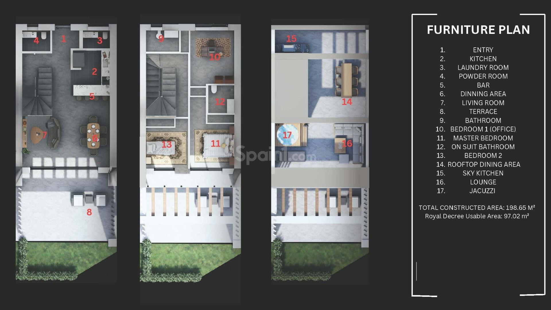 Casas adosadas de nueva construcción en El Chaparral Mijas Vida moderna cerca del mar Exclusiva urbanización residencial en El Chaparral Mijas Bienvenido a este proyecto boutique de nueva construcción situado en las tranquilas colinas cubiertas de pinos de El Chaparral Mijas. Este exclusivo complejo residencial consta de solo 22 casas adosadas contemporáneas de tres dormitorios diseñadas para ofrecer privacidad, comodidad y un refinado estilo de vida mediterráneo. El Chaparral es una zona residencial muy apreciada, conocida por su entorno natural, su proximidad a la costa y su fácil acceso a los principales destinos de la Costa del Sol. Viviendas contemporáneas con distribuciones flexibles La promoción ofrece una selección de casas adosadas y unidades en esquina cuidadosamente diseñadas para maximizar la luz, el espacio y la privacidad. Cada vivienda se distribuye en dos plantas principales más un solárium privado en la azotea. En la planta baja se encuentra una sala de estar y comedor de planta abierta con cocina integrada, lavadero, aseo de invitados y acceso directo a la terraza y al jardín privado. La planta superior cuenta con tres dormitorios dobles y dos baños, incluido un dormitorio principal con baño en suite. Algunas unidades incluyen un nivel subterráneo que se puede personalizar como sala de juegos, gimnasio doméstico o sala de cine privada, dependiendo de sus necesidades de estilo de vida. El aparcamiento está incluido, ya sea al aire libre o subterráneo, dependiendo del tipo de propiedad. Solárium privado con vistas al mar El solárium de la azotea ofrece un espacio ideal para disfrutar del clima mediterráneo y de las vistas al mar. Esta zona ofrece la posibilidad de instalar una piscina y una cocina de verano, creando un entorno perfecto para el descanso y el entretenimiento. Especificaciones de alta calidad y comodidad moderna Todas las viviendas están construidas con acabados de primera calidad y tecnología moderna. Cuentan con aire acondicionado, calefacción por sistema aerotérmico y cocinas totalmente equipadas con electrodomésticos Siemens de alta gama. Las ventanas de cristal de suelo a techo mejoran la luz natural y crean una conexión perfecta entre las zonas de estar interiores y exteriores. La orientación de cada vivienda se ha planificado cuidadosamente para garantizar la privacidad y el aprovechamiento óptimo de la luz mediterránea. Zonas comunes estilo resort Los residentes pueden disfrutar de una completa zona de ocio diseñada para el bienestar y la relajación. Las instalaciones incluyen un gimnasio totalmente equipado, sauna y jacuzzi. En el exterior, la piscina comunitaria y la piscina infantil están rodeadas de jardines tropicales que ofrecen un entorno tranquilo y familiar. Ubicación privilegiada cerca de campos de golf, playas y pueblos El club de golf El Chaparral está a solo unos minutos, lo que lo convierte en una excelente opción para los amantes del golf. Las playas de arena de Mijas Costa están a aproximadamente 0,8 km y se puede llegar fácilmente a pie. La Cala de Mijas, con sus restaurantes, tiendas y paseo marítimo, está cerca, mientras que Fuengirola, Marbella y Puerto Banús se encuentran a poca distancia en coche. Distancias clave a puntos de interés Playa de Mijas Costa: 0,8 km Club de golf El Chaparral: 1 km La Cala de Mijas: 3 km Fuengirola: 6 km Marbella: 20 km Puerto deportivo de Puerto Banús: 22 km Aeropuerto de Málaga: 30 km Su nuevo hogar en la Costa del Sol Disfrute de la tranquilidad, el diseño y una ubicación privilegiada en la costa, en una de las zonas más atractivas de Mijas. Póngase en contacto con nosotros hoy mismo para recibir más información o concertar una visita privada a estas exclusivas casas adosadas de nueva construcción.
