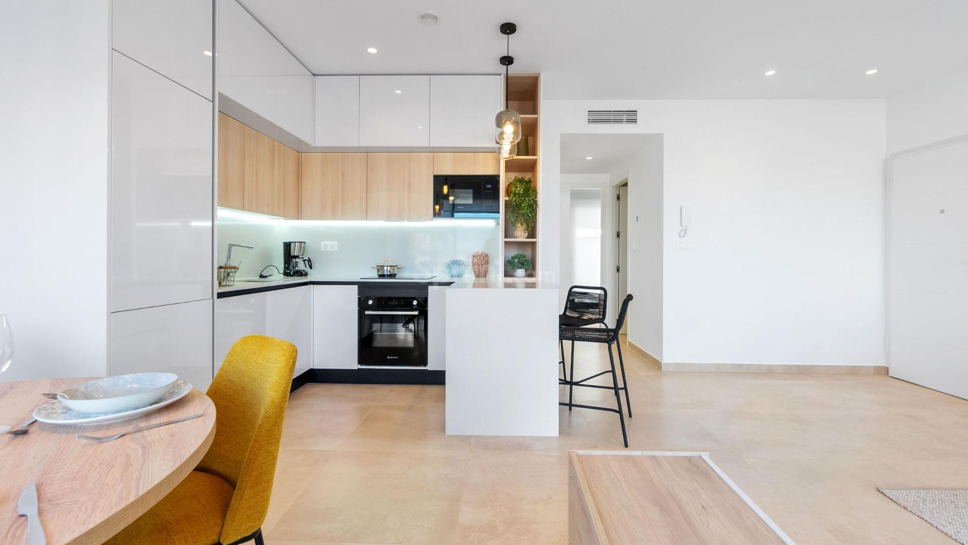 Las residencias constan de 2 dormitorios y 2 baños, con la opción de un tercer dormitorio para adaptarse a sus necesidades. Cada apartamento ofrece espectaculares vistas de la laguna rosa de Torrevieja, creando una experiencia única donde la naturaleza se convierte en una parte integral de su vida diaria.