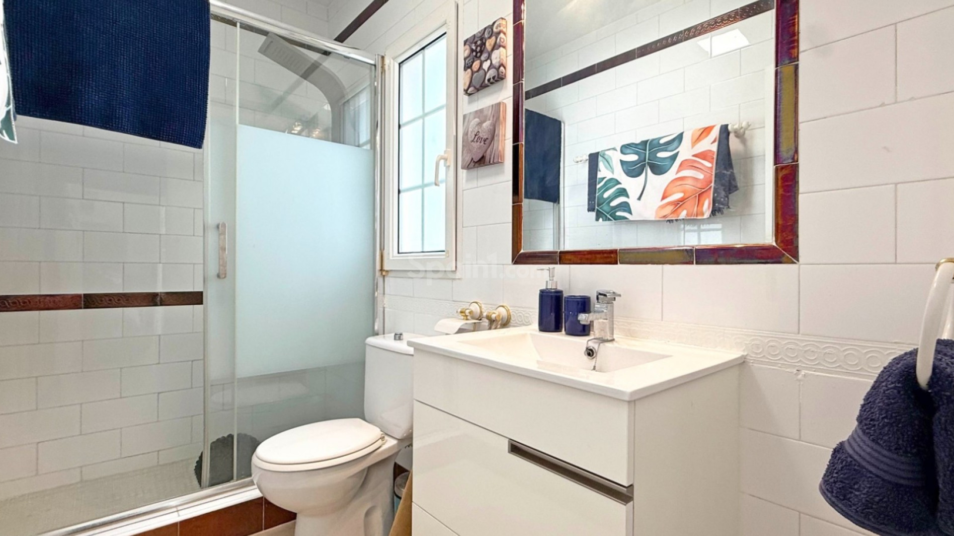 Denne vakkert vedlikeholdte villaen har blitt omtenksomt ombygd til et hjem med 2/3 soverom, og tilbyr den perfekte blandingen av komfort og stil. Eiendommen har et privat basseng, tre bad (hvorav to har eget bad), et romslig kjøkken/spisestue og en stor stue med direkte tilgang til en balkong med utsikt over bassenget. Balkongen kan lukkes med glassgardiner, noe som gjør den ideell for bruk året rundt. Gjestesoverommet åpner ut mot en privat terrasse, også utstyrt med glassgardiner, mens hovedsoverommet har en romslig takterrasse med fantastisk havutsikt. Ytterligere høydepunkter inkluderer klimaanlegg overalt, valgfri sentralvarme, to store boder og en utmerket beliggenhet i et rolig og privat område av Villamartin. Alt dette bare en kort spasertur fra det berømte Villamartin Plaza og golfbanen.
