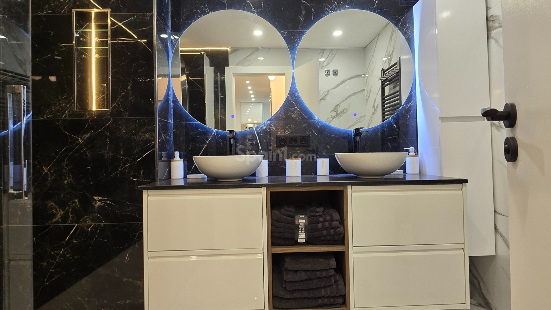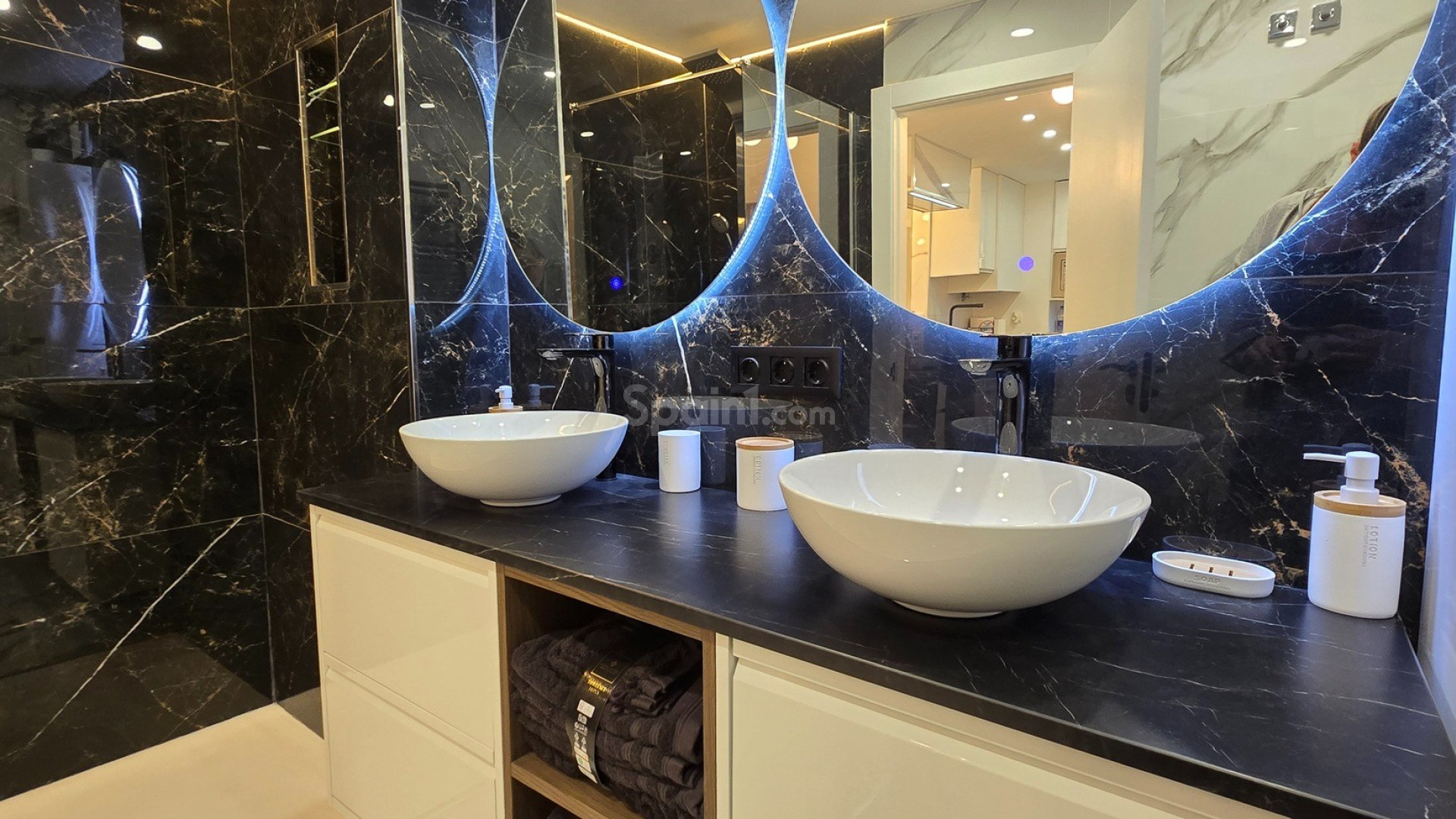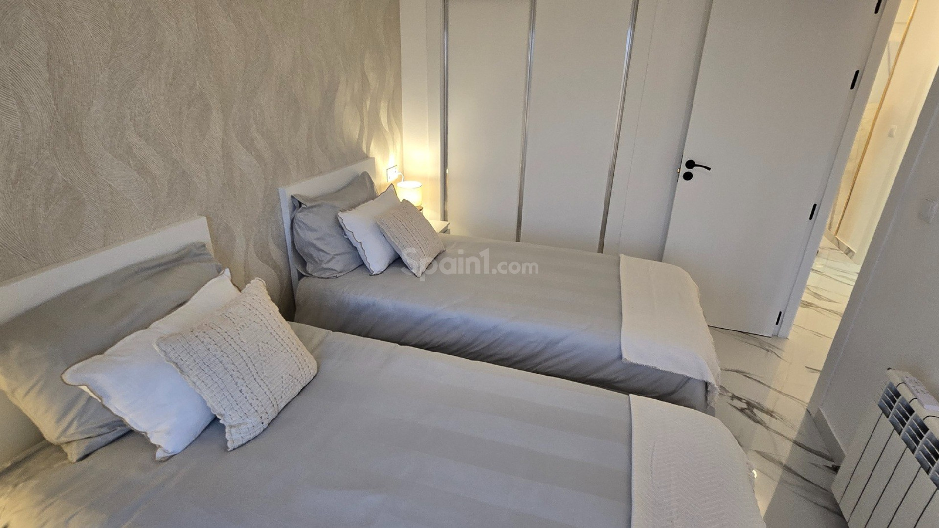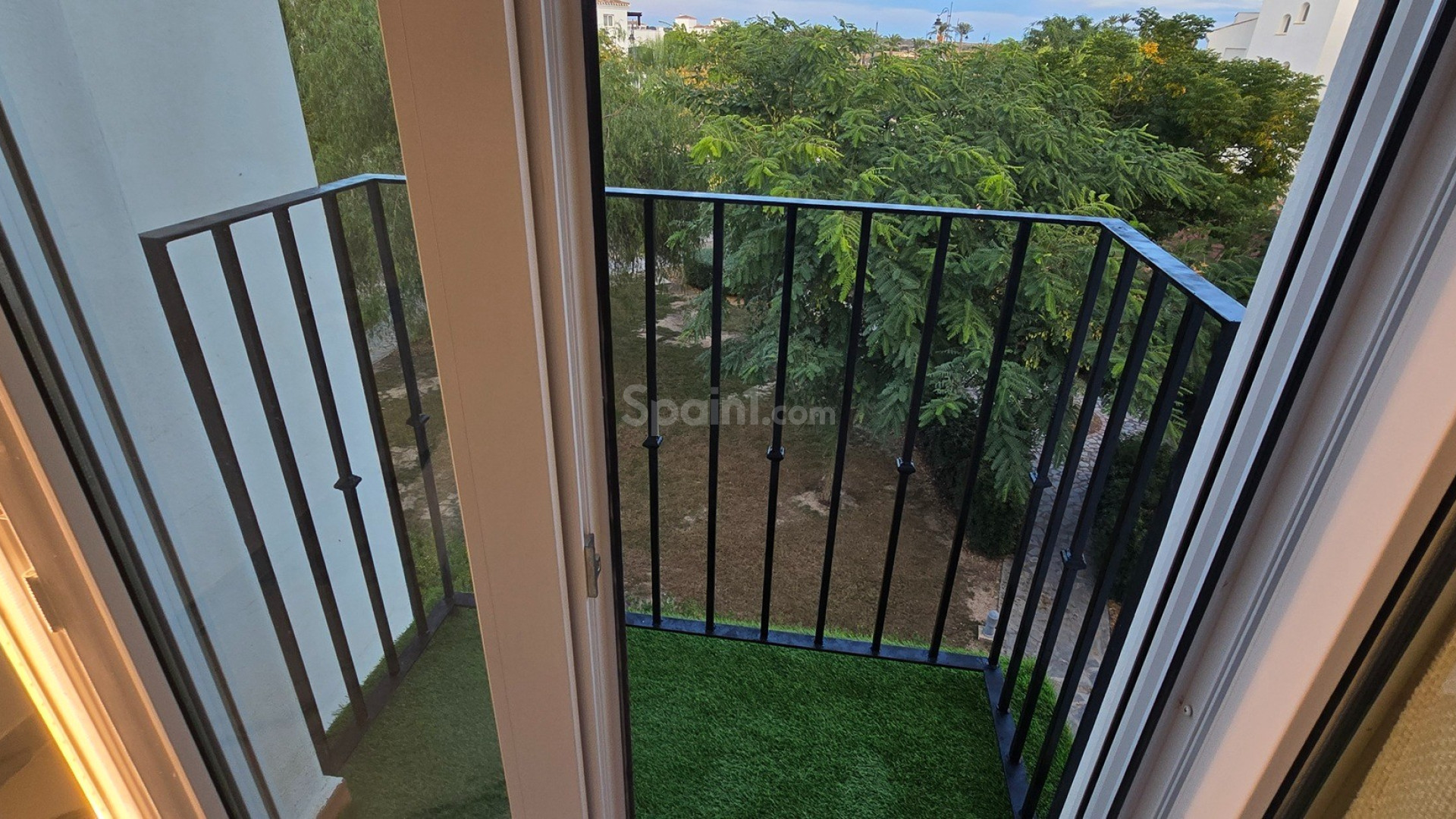 Totalrenovert leilighet i Hacienda Riquelme Golf Resort. Oppdag denne eksklusive, totalmoderniserte og eksklusive designleiligheten i andre etasje, perfekt beliggende nær klubbhuset til det prestisjefylte Hacienda Riquelme Golf Resort i Murcia. Dette er en unik mulighet for de som søker luksus, komfort og et virkelig nøkkelferdig hjem ferdigstilt til høyeste standard. Denne fantastiske leiligheten har blitt fullstendig forvandlet. Fra det stilige nye gulvet til det fullstendig redesignede åpne kjøkkenet, det elegante, moderne badet og de raffinerte finishene gjennomgående – hver detalj utstråler kvalitet og raffinement. Den lyse, åpne stuen har en spesiallaget mediavegg og store skyvedører som fører til en vestvendt terrasse med utsikt over bassenget. Det nye designerkjøkkenet er fullt utstyrt med hvitevarer av høy kvalitet. Begge soverommene har innebygde garderober, takvifter og fransk balkong, mens det renoverte badet har et friskt, moderne utseende. Leiligheten selges fullt møblert, noe som gjør den klar til innflytting umiddelbart. Den inkluderer også en sikker, underjordisk parkeringsplass med heis til alle etasjer. Hvis du leter etter en stilig, nøkkelferdig designleilighet med førsteklasses beliggenhet – er dette et absolutt must. Interessert? Send en melding til Iris på iris@global-spain.com eller send en Whatsapp til: +32 499 73 55 34