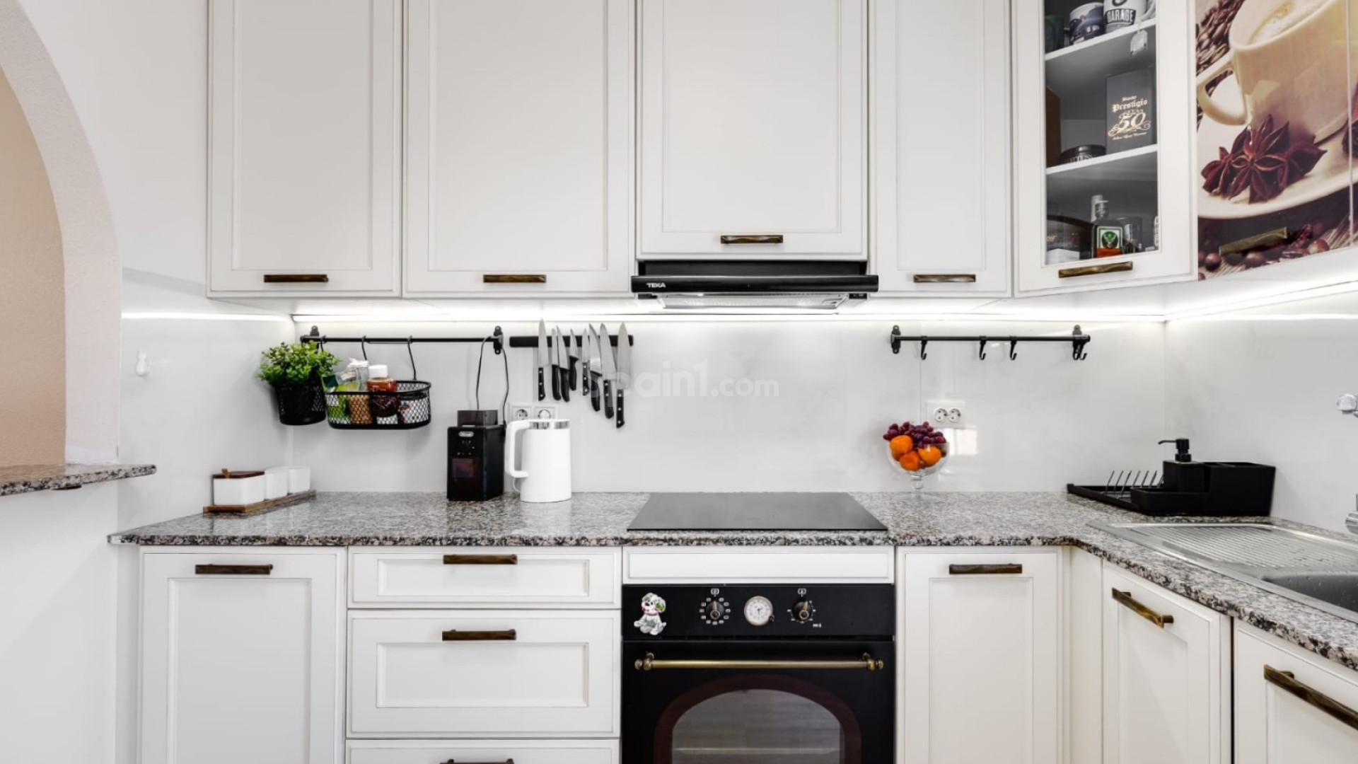 Denne lyse og velholdte boligen med 3 soverom og 2 bad ligger i populære Aguas Nuevas i Torrevieja, og tilbyr et bebygd areal på ca. 90 m² og en komfortabel planløsning i god stand. Med en sør-nord-orientering vil du nyte naturlig lys og luftstrøm hele dagen. Eiendommen har blitt renovert, inkludert nye vinduer, klimaanlegg og et solcellepanelanlegg – ideelt for forbedret komfort og lavere driftskostnader. En praktisk bonus er de to separate utgangene, som gir fleksibilitet for hverdagslivet. Omtrentlige kostnader (som oppgitt): IBI ~€235 og fellesavgifter ~€90/kvartal. Et flott alternativ for en familiebolig, feriested eller utleieinvestering i et av Torreviejas mest etablerte boligområder.