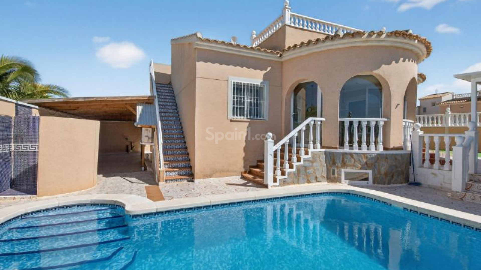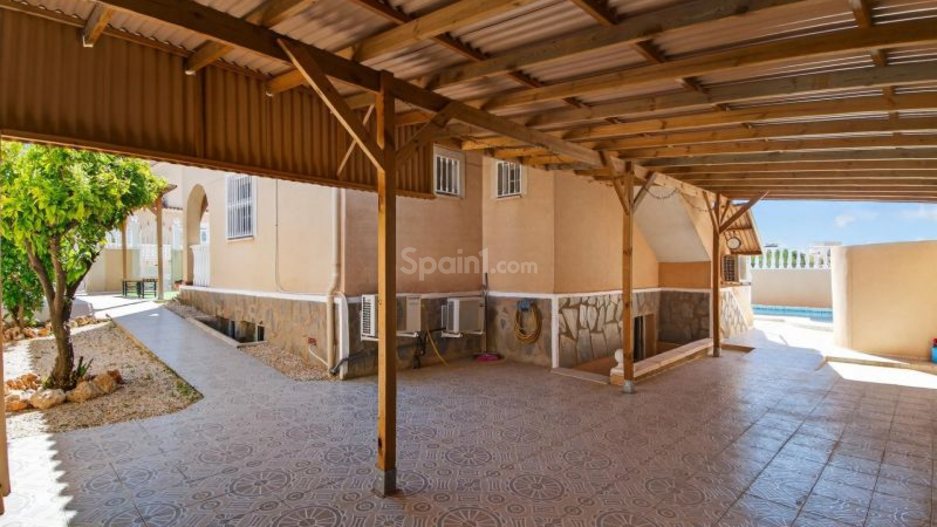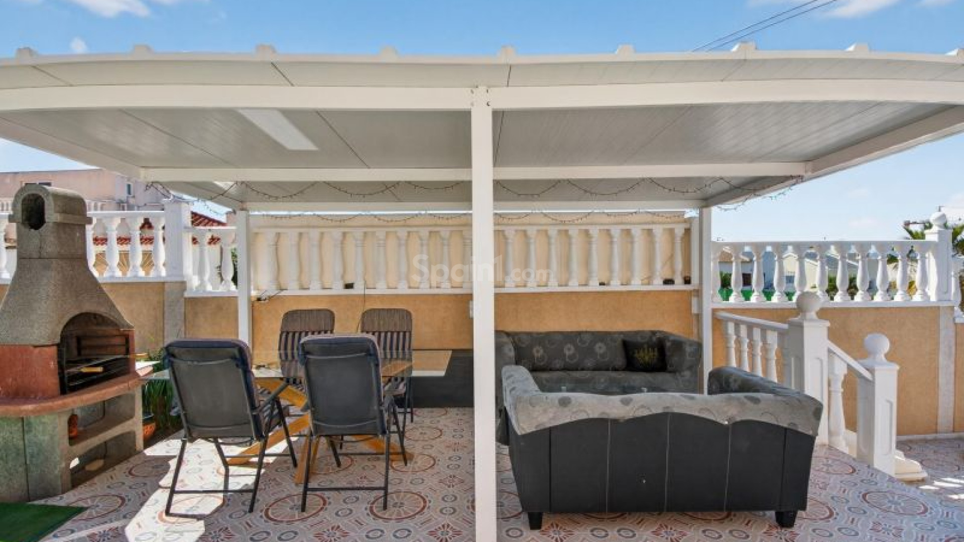 Frittstående villa i Atalaya Park - Benijófar på en tomt på 408 m², designet for komfortabel bolig på ett plan med flotte uteområder. Boligen har en lys stue og spisestue med peis, samt et fullstendig renovert moderne åpent kjøkken, som skaper et praktisk og moderne oppholdsrom. Den består av 3 soverom og 2 bad, i tillegg til en romslig innglasset terrasse, perfekt for bruk hele året. På toppen finner du et takterrasse/solarium, ideelt for å nyte solen hele dagen takket være alle himmelretninger, som gir rikelig med naturlig lys. Uteområdet skiller seg ut med en hage med frukttrær, kombinasjon av flislagte områder og kunstgress, samt et privat svømmebasseng. Eiendommen har også overbygd parkering på tomten og en pergola tilrettelagt for grill og avslapning. I tillegg finnes det en kjeller som brukes som bod, som gir ekstra lagringsplass. Boligen ligger i et område i vekst og svært populært blant internasjonale kjøpere, med alle nødvendige fasiliteter i nærheten, inkludert supermarkeder, internasjonale restauranter, butikker og fritidstilbud. Den ligger også nær kjøpesentre, golfbaner som La Marquesa i Rojales, og strendene i Guardamar, med enkel tilgang til hovedveier og flyplassen. Selges møblert og er et utmerket valg både som helårsbolig og feriebolig. Ta kontakt for mer informasjon eller avtal en visning.