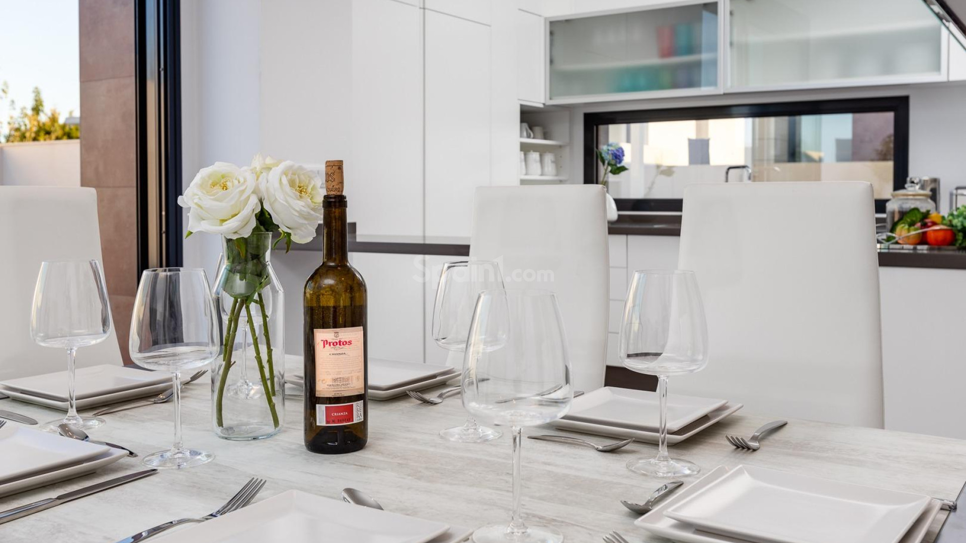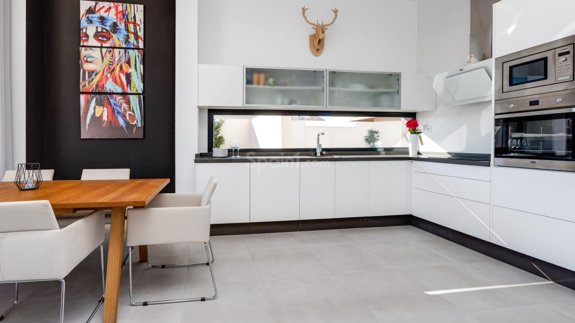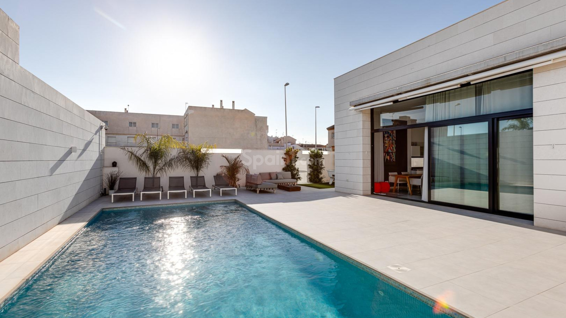 MEDITERRANEAN VILLA IN URBAN AREA CLOSE TO THE SEA Well cared for and designed for your well-being, this house is clad in natural stone. The double height of the living room and the natural light in the bathrooms are some of the surprises you will find in this villa. The villa has a spacious living-dining-kitchen, 3 bedrooms, 2 bathrooms (one en suite), a garage on the plot, a private garden of about 100m2, terraces. Electrical appliances Landscaped areas with artificial grass and paved terrace area. Pre-installation of air conditioning by means of ducts in the living-dining room and bedrooms. Built-in wardrobe. Located in the municipality of Pilar de la horadada, it has an optimal location, with easy access to schools (200 metres), medical centres (250 metres), pharmacies (100 metres), beaches (1.6 km) and surrounded by parks, green areas and transport services.