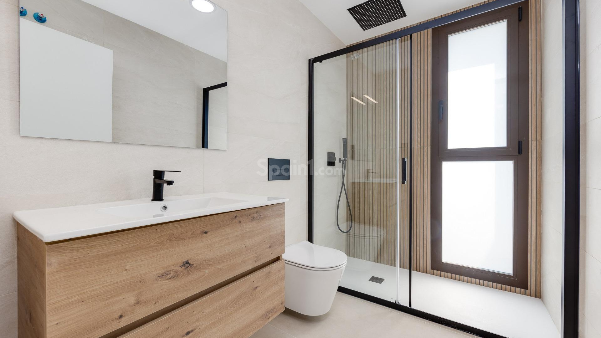 NEW BUILD RESIDENTIAL COMPLEX NEAR LA SERENA GOLF, LOS ALCAZARES 20 detached villas within a front line golf complex. The villas have 3 bedrooms and 3 bathrooms, basement with garage and storage room, private swimming pool and private solarium. Residential located in a frontline of the prestigious golf course “La Serena Golf”. This golf course is well renowned for its lakes and vegetation that interweave with the golf course. The water and lakes are present in 16 of the 18 holes, but all the course is designed to offer the golfer different strategies in each hole. Another aspect that makes this golf course unique is that it’s connected by walking to the city centre, something impossible to find in other golf locations that allow us to enjoy the calm and the beauty of the area without refusing the access to the services that Los Alcázares offers. Los Alcázares an exceptional area on the Costa Cálida at only 25 minutes from Murcia airport and 55 min from Alicante airport. The area is connected through highway with the cities of Cartagena, Murcia and Alicante and the rest of the beaches of the Costa Cálida and the Costa Blanca.