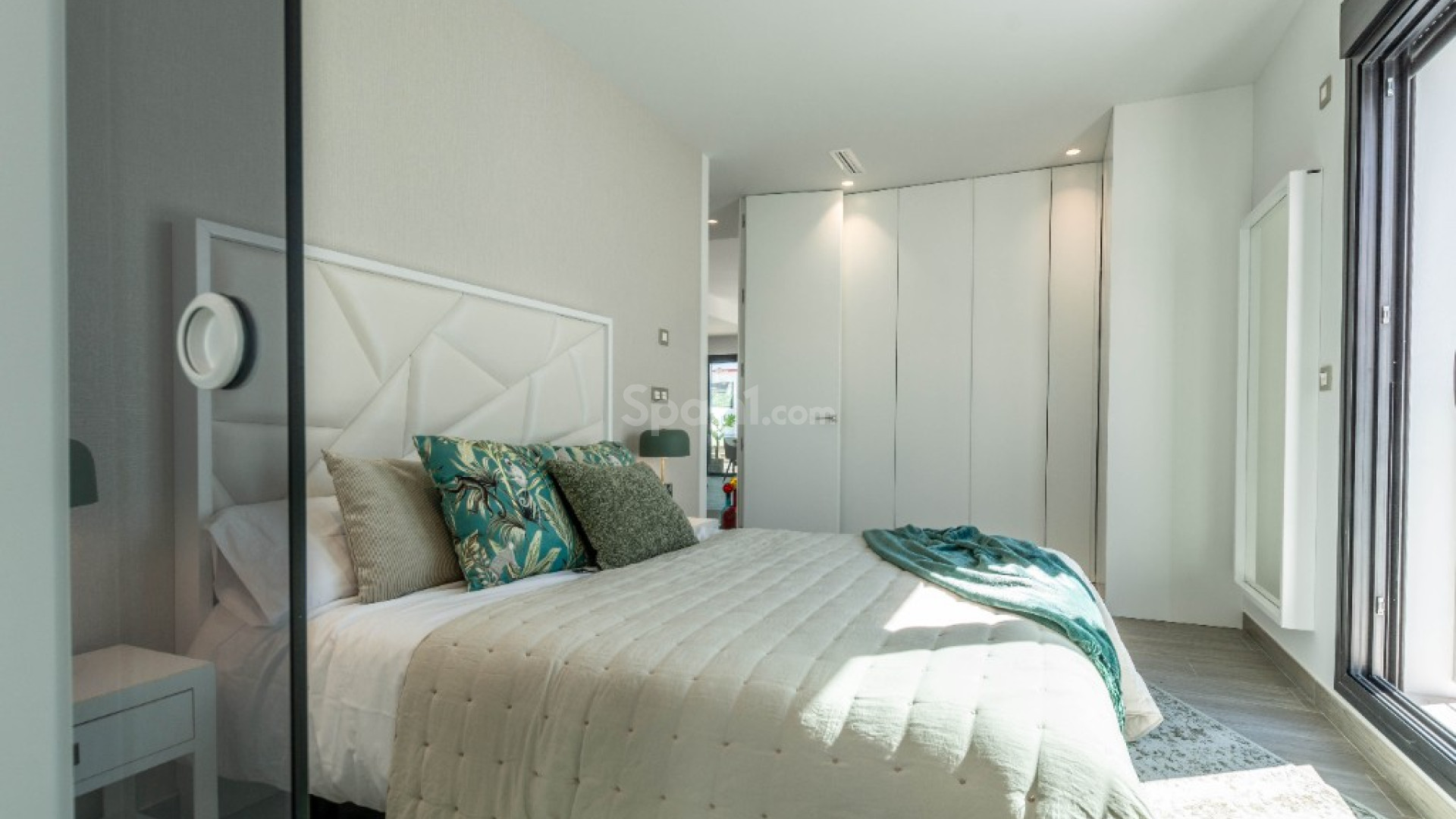 New build villas with the pool for sale in Benidorm, Costa Blanca, Spain. New build complex with 16 new build luxury villas, each one has an open views to the Skyline of Benidorm. You can choose villas with plots 304m2 approximately as well as to have a basement 149m2. Villas for sale have 3 bedrooms, 2 bathrooms, large living room and kitchen, roof terrace and lovely outside garden with the pool (the pool is included in the price).The construction works is carried out using only the highest quality materials and finishing works such as: double glazed aluminium windows, shower plates in the bathrooms, top quality porcelain used for the floor and interiors, automatic entry doors with intercom, air conditioning pre-installation and much more extras. New complex - located a few kilometers from the popular city of entertainment in Costa Blanca- Benidorm. Nearby you will find shops, supermarkets, banks, restaurants, schools. But if you want entertainment, then just a few minutes away golf, casinos, shopping malls, water parks, discos and much more great entertainment. Only 55 km from aeropuerto de Alicante. Good choice to live in Spain all year around.