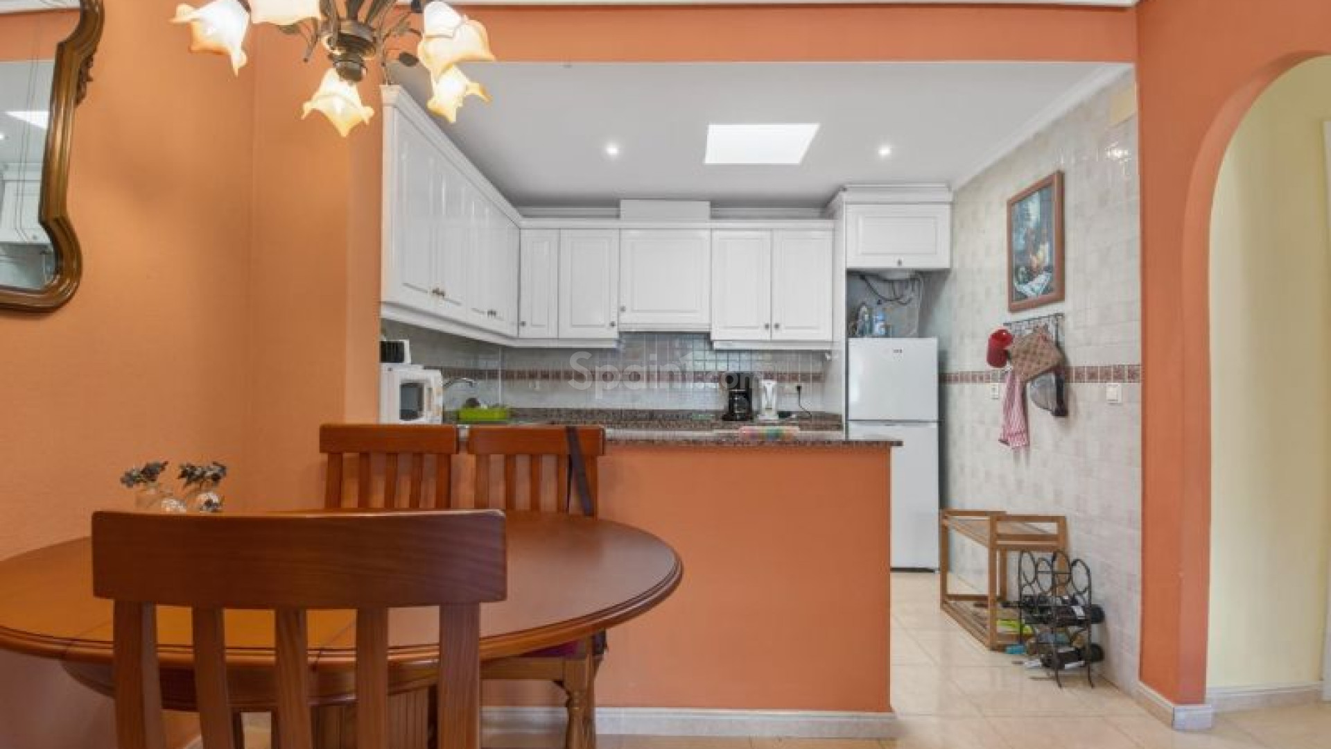 Located in Residencial Sunlake I, in the Torretas II area of Torrevieja, this corner townhouse offers comfortable single-level living together with generous outdoor space. The property features three bedrooms, one bathroom and a guest toilet, as well as a bright living and dining area with an open-plan American-style kitchen, fully equipped for everyday use. Thanks to its southwest orientation and corner position, the home enjoys abundant natural light throughout the day. Outside, the property benefits from a private corner garden with vehicle access and space to park inside the plot. The outdoor area has been designed to enjoy the Mediterranean lifestyle, with a chill-out space for gatherings, a barbecue area and a wooden storage shed. An external staircase leads to a spacious 37 m² rooftop sun terrace, offering an additional outdoor area ideal for relaxing or spending time with family and friends. The property is sold furnished and in move-in condition. Residents of the development also enjoy access to a community swimming pool for the exclusive use of homeowners. The location is very convenient, close to Habaneras Shopping Centre, Carrefour and a wide range of supermarkets, as well as schools, La Siesta Park, cycling paths and walking areas, and within easy reach of Torrevieja town centre. "Don’t miss the opportunity to see this property in person; contact us today to schedule your visit."