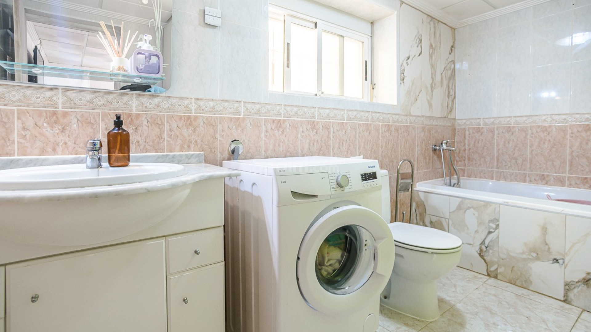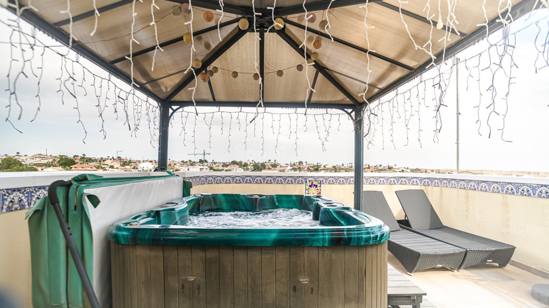 In a prime location in La Marina, we find this beautiful detached villa with a guesthouse and views towards the sea in Guardamar del Segura. Quietly situated, yet within walking distance of shops, restaurants, and all amenities, the perfect balance between comfort and vibrancy. The house is spread over two levels and offers a surprisingly flexible layout. On the ground floor, there is a fully furnished guest house, ideal for family, friends, or rental. The main residence on the first floor exudes light and space, with a cozy living and dining room, open kitchen, and direct access to a spacious terrace with a beautiful view. A unique extra is the private elevator between the floors, which ensures extra comfort and accessibility. As the icing on the cake, the villa features a spacious roof terrace with a pergola, summer kitchen, and jacuzzi—the perfect place to enjoy the Mediterranean lifestyle and the sea view. In addition, the home is equipped with solar panels, ensuring an energy-efficient and sustainable lifestyle, ideal for those who want to live permanently in Spain. For extra comfort, air conditioning (hot/cold) is available, as well as a cozy pellet stove, perfect for cooler winter evenings. Outside, you will find a low-maintenance garden, private parking, and access to a communal swimming pool. A versatile home that is perfect as a permanent residence, holiday home, or investment. Interested? Feel free to contact us; we would be happy to let you experience this home for yourself.