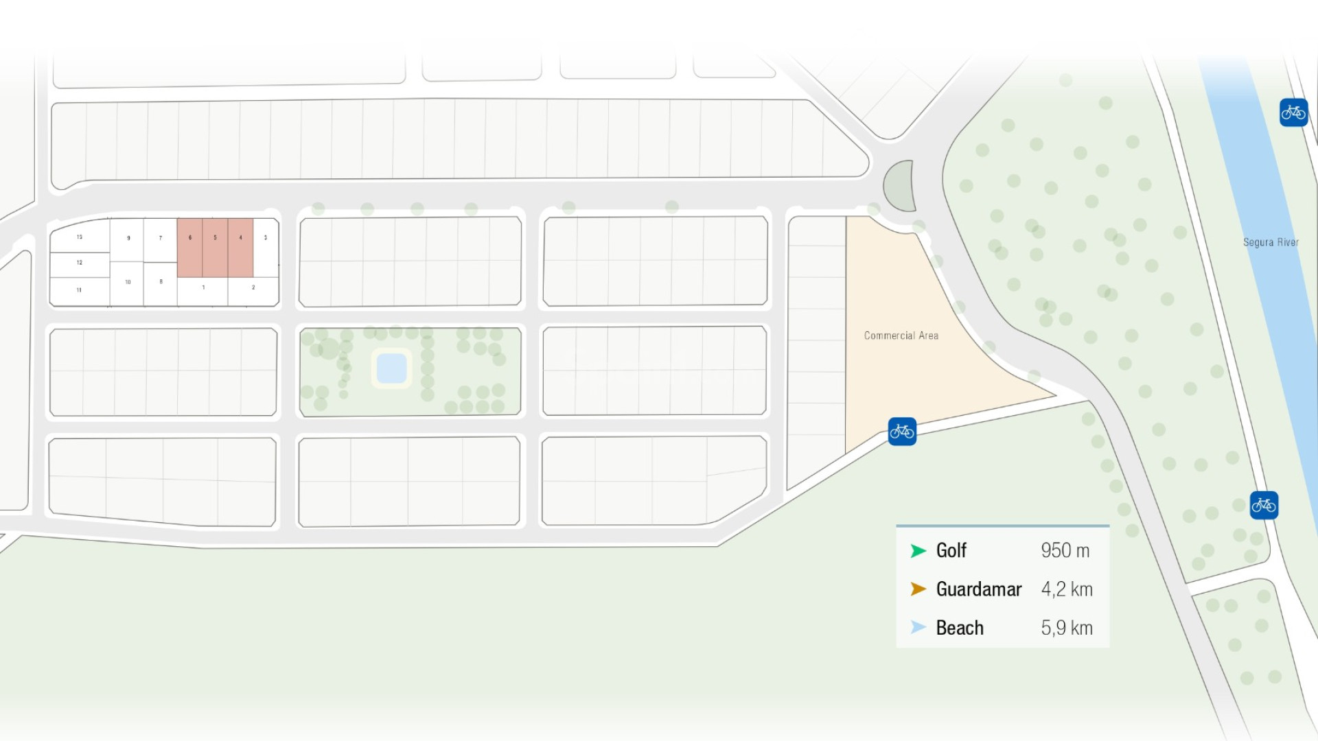 Alla bostäder inkluderar privat pool, garage, elektriska apparater, lampor, persienner och luftkonditionering.