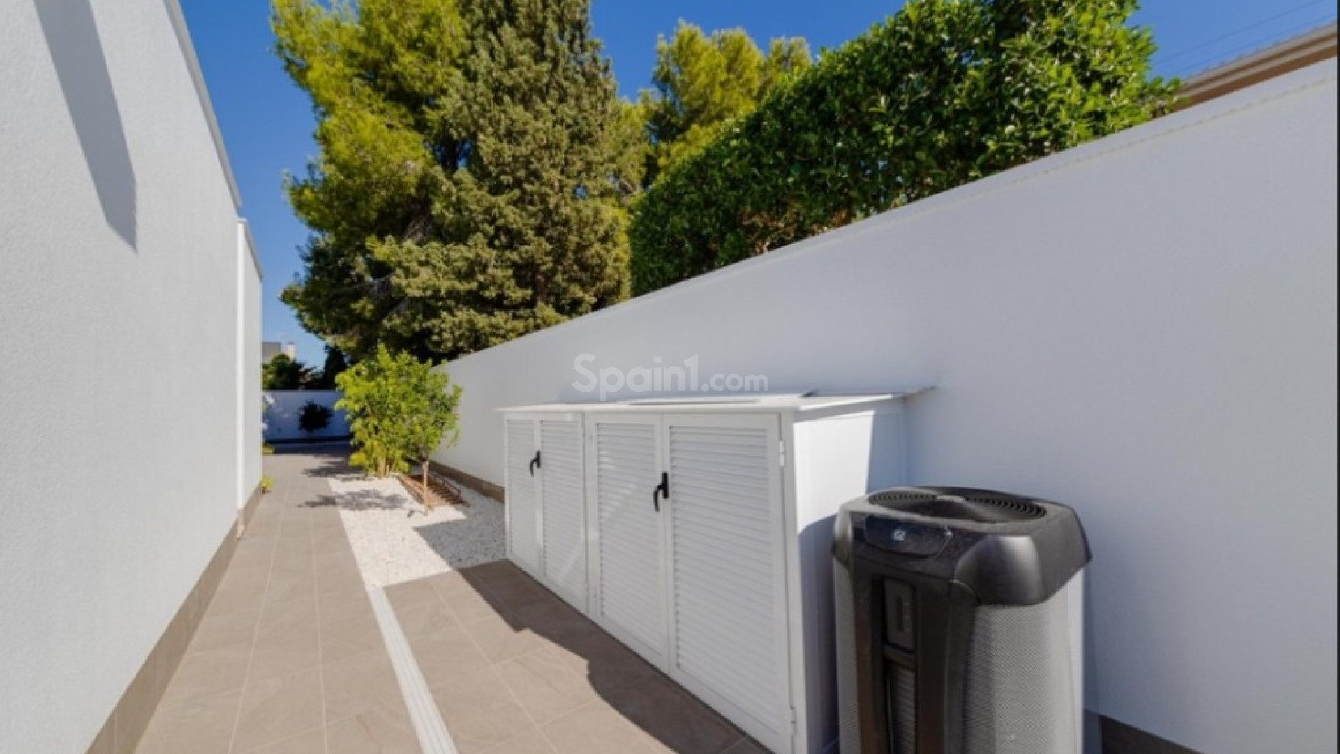 Nybyggd lyxvilla i Ciudad Quesada. Vi erbjuder en ny lyxvilla byggd enligt hög standard utrustad med 4 sovrum och 4 badrum, vardagsrum, rymligt fullt utrustat kök med köksö utrustat och möblerat med högkvalitativa köksapparater, tvättstuga, täckt terrass och källare med engelsk uteplats. Huset är utrustat med luftkonditionering, kyla och värme med centraliserat kanalsystem i två våningar, golvvärme med Aerothermal-system. Utomhus hittar du en stor trädgård med naturligt gräs eller grus och växter, privat pool (4x8) med saltvatten, belysning och dusch. Ciudad Quesada är en modern stad, belägen på södra Costa Blanca, bara 8 km norr om den stora staden Torrevieja och med både Alicante och Murcia flygplatser bara 30 minuters bilresa bort och 40 minuter till San Javier. Quesada har också ett stort utbud av pubar och restauranger, vattenparken Aqua Splash och två golfbanor, La Finca Golf och La Marquesa Golf and Country Club. Några av de bästa stränderna på Costa Blanca, de prisbelönta sandstränderna med blå flagg vid Guardamar Del Segura, ligger bara 10 minuter bort, och saltsjöarna i Torrevieja ligger mycket nära, vilket bidrar till en fantastisk hälsosam livsstil.