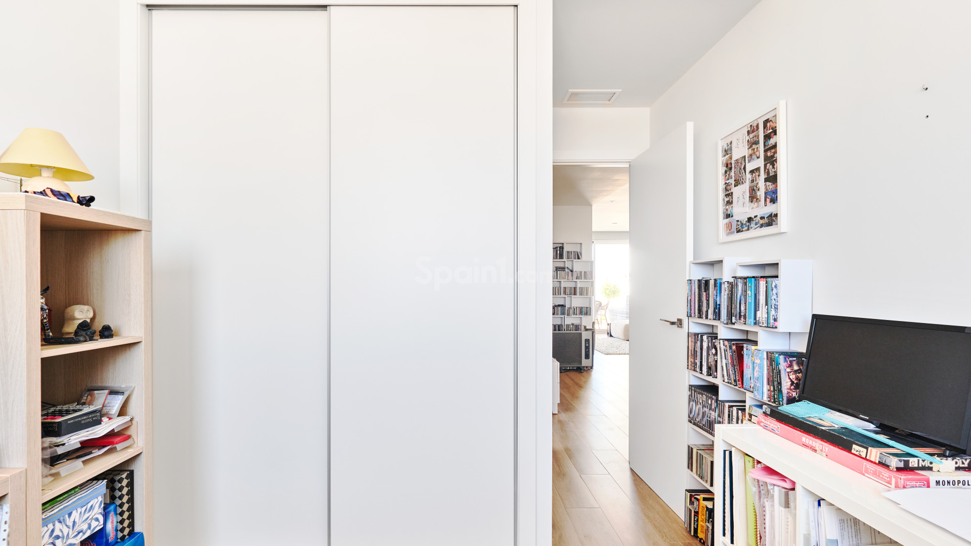 Takvåning till salu i Villamartin, Orihuela Costa. Lägenhet på översta våningen till salu i det populära och eftertraktade området Villamartin i Orihuela Costa. Byggd 2023, denna fantastiska lägenhet nås via hiss och har en stor gemensam pool med etablerade växter och träd, utomhusgym, lekplats och gott om plats för solbad och avkoppling i de gemensamma utrymmena. Lägenheten består av ett rymligt och ljust öppet vardagsrum/matsal med fullt utrustat modernt kök och en dörr som leder till ett separat tvättstuga med tvättmaskin och varmvattenberedare. Vardagsrummet har altandörrar som leder till en terrass med sittgrupp. Det stora sovrummet är av god storlek med inbyggd garderob, eget badrum med duschkabin och altandörrar som leder till terrassen. Det andra sovrummet är också ett bra stort dubbelrum med inbyggda garderober och bredvid ligger det andra familjebadrummet, också det med duschkabin. En intern trappa från vardagsrummet leder till den stora privata takterrassen med utsikt över den gemensamma poolen och trädgårdarna. Den har också utsikt över havet och Mar Menor i fjärran. Terrassen är utrustad med en pergola för skugga och en utomhusdusch. Lägenheten har många extrafunktioner inklusive elektriska markiser, kanaliserad varm och kall luftkonditionering, tilldelad parkeringsplats, golvvärme i badrummen och elektriska jalusier.