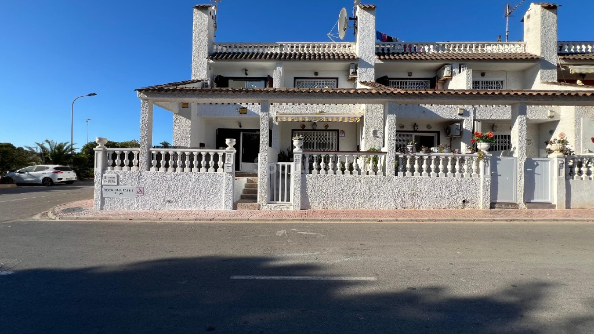 Radhus till salu i Rocajuna, Los Altos, Punta Prima. Radhuset ligger i det mycket attraktiva området Los Altos, Punta Prima, och erbjuder en perfekt kombination av modernt boende och ett oslagbart läge. Fastigheten ligger i det gated complexet Rocajuna I och har tillgång till en gemensam pool, och bara en kort promenad från flera barer, restauranger och butiker. Detta radhus är det perfekta hemmet för dem som söker både lugn och närhet till allt du behöver, inklusive stranden. När du närmar dig fastigheten möts du av en charmig hörnterrasserad på framsidan, som erbjuder en lugn plats att koppla av eller underhålla gäster. Husets interiör har ett öppet vardagsrum och matplats, ett separat kök. Detta utrymme leder också ut till en bakre terrasserad, som erbjuder direkt tillgång till den gemensamma poolen och den frodiga trädgården bara några meter från fastigheten. På övervåningen, på första våningen, finns badrum, 2 sovrum, varav det stora sovrummet sticker ut med inbyggda garderober och en egen balkong med havsutsikt. Detta tysta utomhusutrymme erbjuder en lugn miljö att koppla av och är inte förbisedd, vilket garanterar fullständig avskildhet. På tredje våningen av huset finns ett sovrum med separat ingång och en terrass med öppen utsikt. Detta område är perfekt för att underhålla gäster eller helt enkelt njuta av den fridfulla medelhavsomgivningen. Oavsett om du är värd för en sammankomst eller kopplar av i solen, erbjuder takterrassen en privat tillflyktsort med hisnande utsikt.