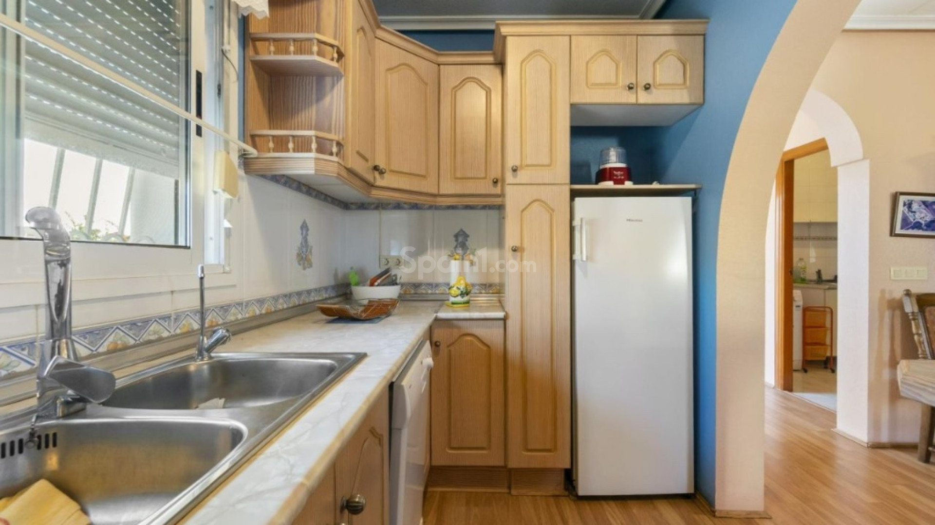 Villa med privat pool till salu Ciudad Quesada, Alicante. Fristående villa till salu i ett centralt men lugnt område i Ciudad Quesada. Detta är ett soligt hem med gott om plats både inomhus och utomhus. 3 sovrum (det tredje är anslutet till takterrassen – perfekt för gäster!) 2 badrum Rymligt och ljust vardagsrum Fullt utrustat kök Separat tvättstuga/förråd Utvändig trappa som leder till takterrassen Inglasad terrass som fungerar som ett extra vardagsrum/lounge Fastigheten erbjuder en underbar kombination av avskildhet och komfort, med välskötta utomhusutrymmen och mysiga områden för både avkoppling och sociala sammankomster. Här finns gott om plats: Stor tomt på 525 m² med fruktträd och en mysig grillplats Privat pool som mäter 4 x 8 meter Söderläge – gott om sol hela dagen Takterrass med utsikt över den vackra lagunen Inglasad utomhuslounge med grill och matplats – perfekt för sociala kvällar året runt.