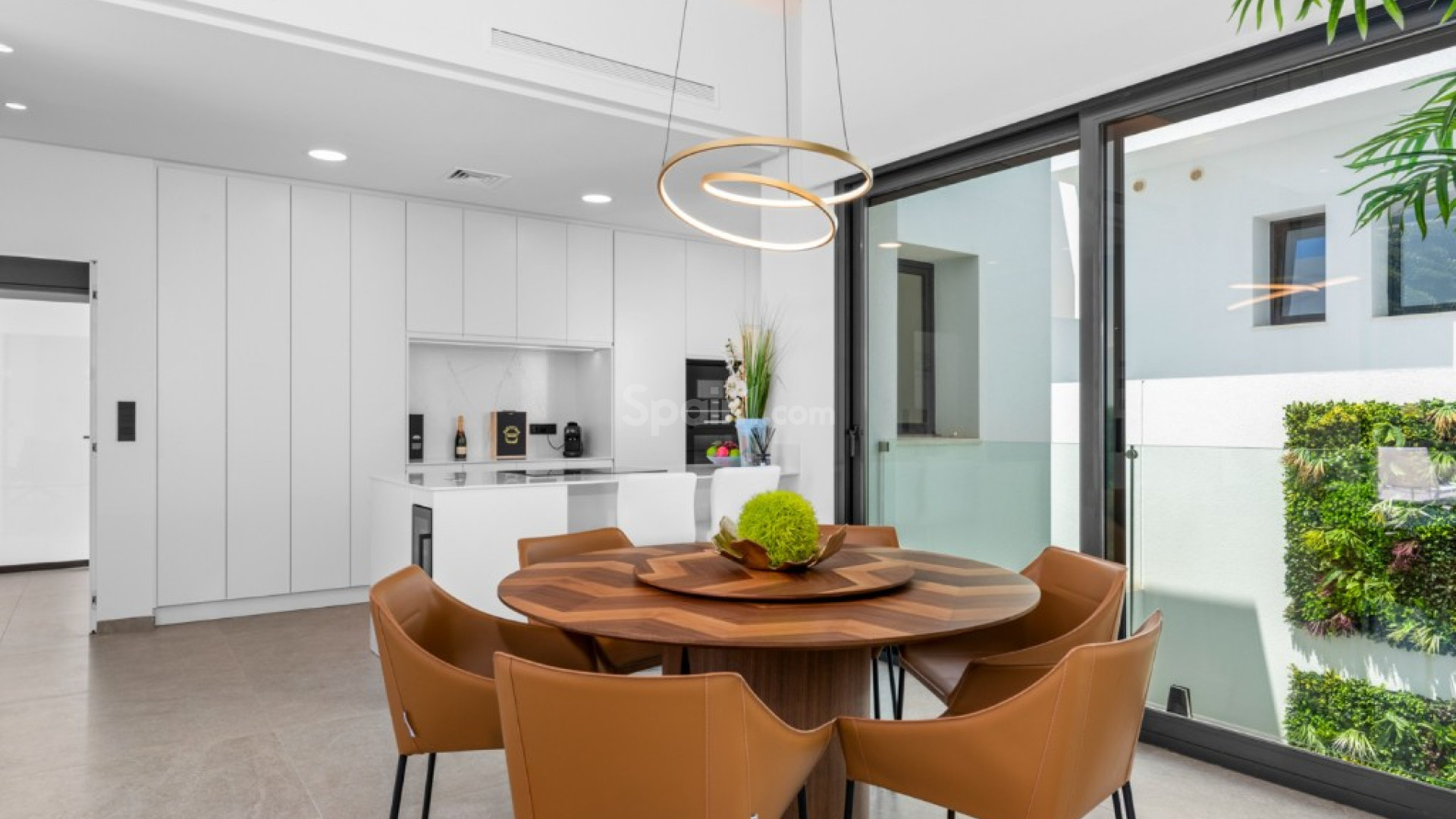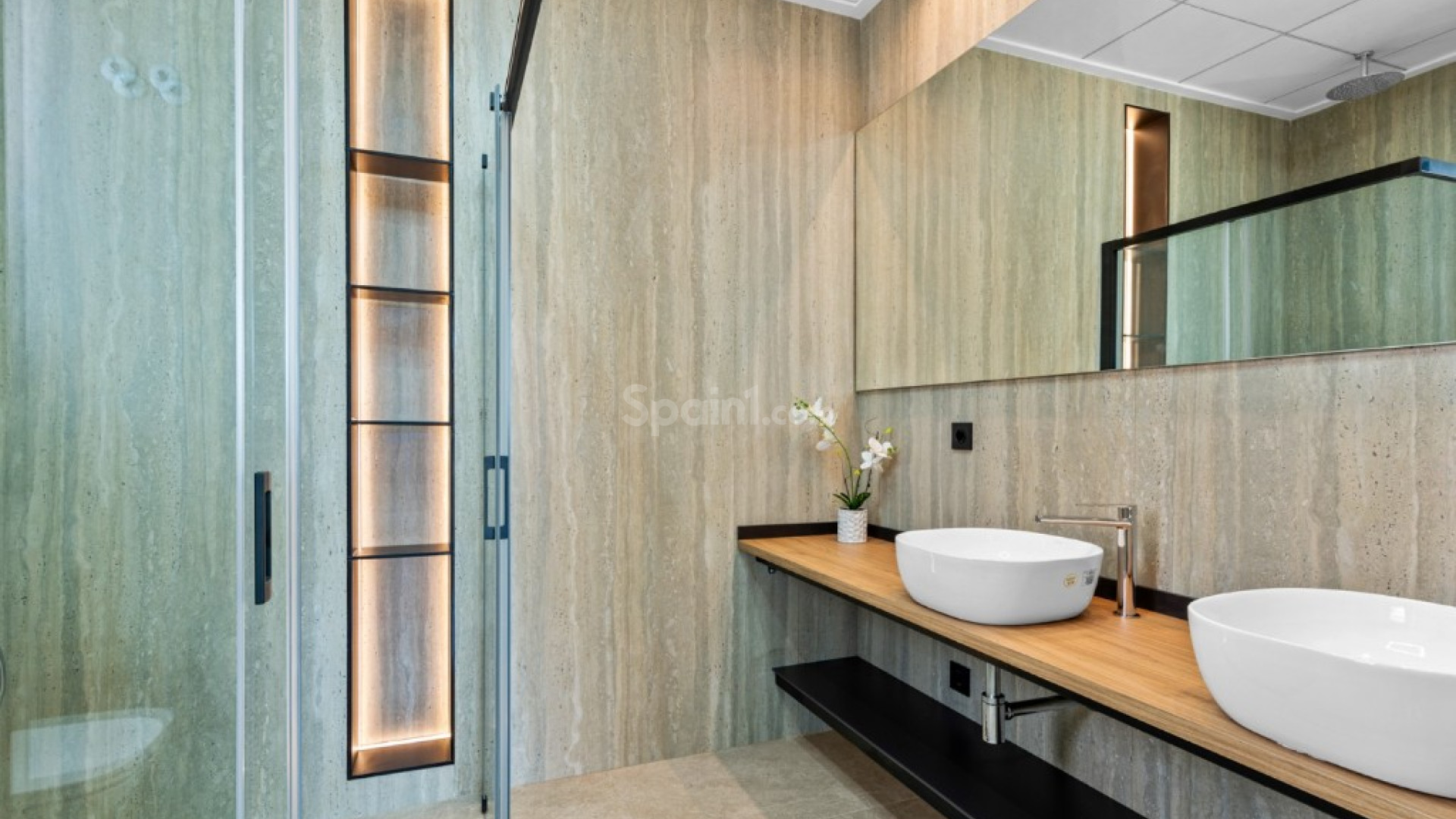Denna nybyggda villa kan bli din dröm: modern och nära alla bekvämligheter. Den har tre rymliga sovrum med inbyggda garderober, tre badrum och en stor terrass. Alla ytbehandlingar är av hög kvalitet och har en modern design. Huset har en säkerhetsdörr, en helt anlagd trädgård med terrass, elektriska persienner, dubbelglasfönster, golvvärme och mycket mer. Villan är idealiskt belägen: Alicantes flygplats ligger bara 20 minuters bilresa bort. Ett shoppingområde med barer och butiker finns i närheten, och alla nödvändiga bekvämligheter finns inom 5 minuters bilresa, inklusive skolor, en vårdcentral och flera butiker. Denna villa på 220 m² ligger på en 500 m² stor tomt. Byggnationen slutfördes i mitten av 2024. Villan ligger på en vacker hörntomt mot sydost. Ytterligare funktioner i villan inkluderar garage, solpaneler, förråd, en kaklad trädgård med palmer, luftkonditionering, tvättmöjligheter och utsikt över grönska. Villan är fullt möblerad och har en rymlig tvättstuga.