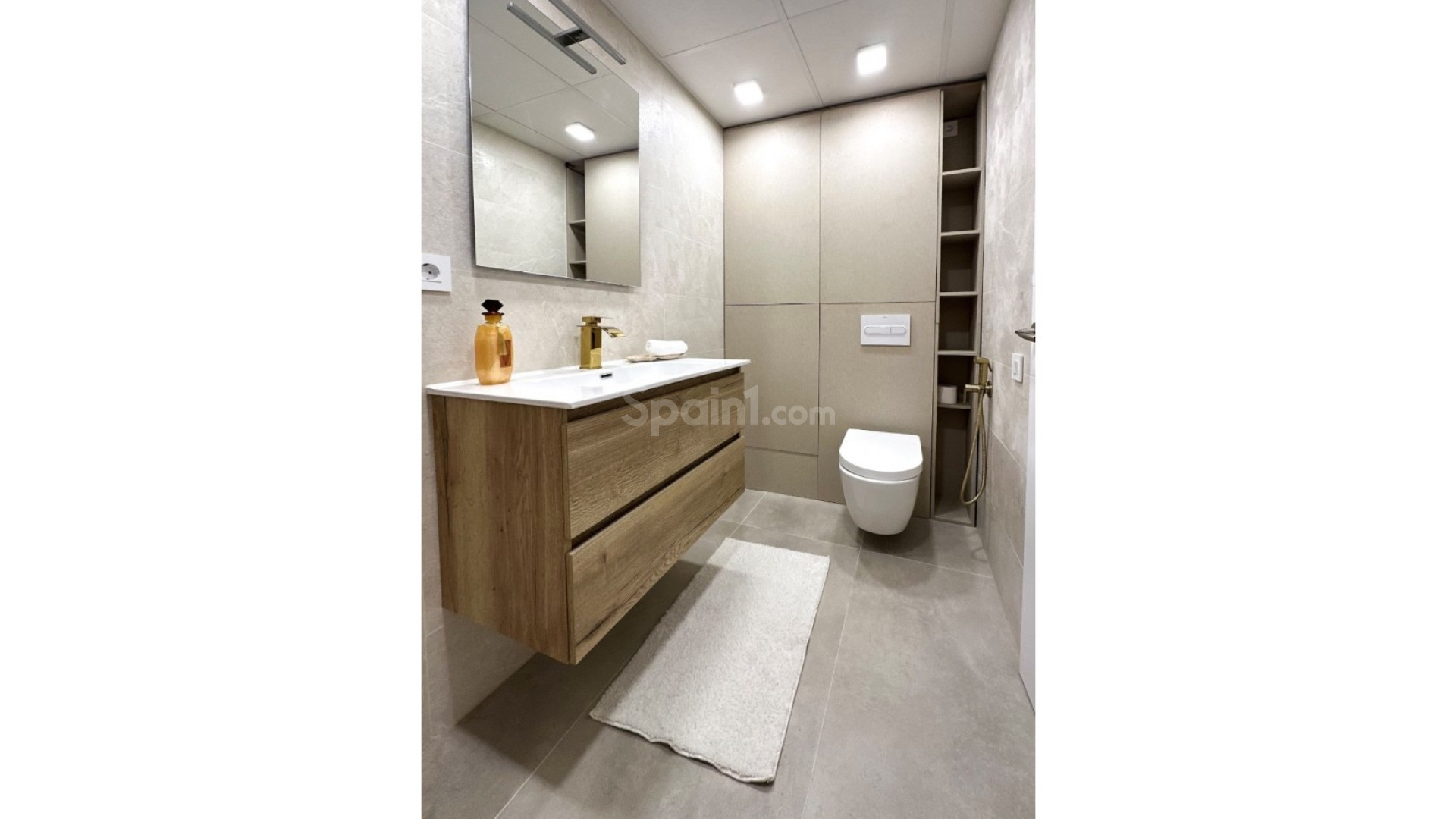 Denna helrenoverade lägenhet ligger bara 50 meter från Playa del Acequión och erbjuder modern komfort i ett av Torreviejas mest bekväma kustområden. Fastigheten har genomgått omfattande uppgraderingar, inklusive nya fönster och dörrar, helt förnyad elinstallation med ökad effektkapacitet och en fullständig renovering av VVS- och avloppssystemen. Lägenheten har även kanaliserad luftkonditionering, en 100-liters elektrisk varmvattenberedare med WiFi och ett elegant modernt kök utrustat med integrerade Bosch-apparater. Interiören erbjuder ett ljust och rymligt vardagsrum med matplats, två sovrum och två moderna badrum, alla i utmärkt skick med nya möbler. En stor privat terrass erbjuder det perfekta utomhusutrymmet för att koppla av och njuta av medelhavsklimatet. Lägenheten ligger i en byggnad med hiss, inom gångavstånd från stranden, restauranger, stormarknader och Torreviejas strandpromenad. En garageplats i samma byggnad finns att köpa. En utmärkt möjlighet för semesterboende, permanent boende eller uthyrningsinvestering på Costa Blanca.